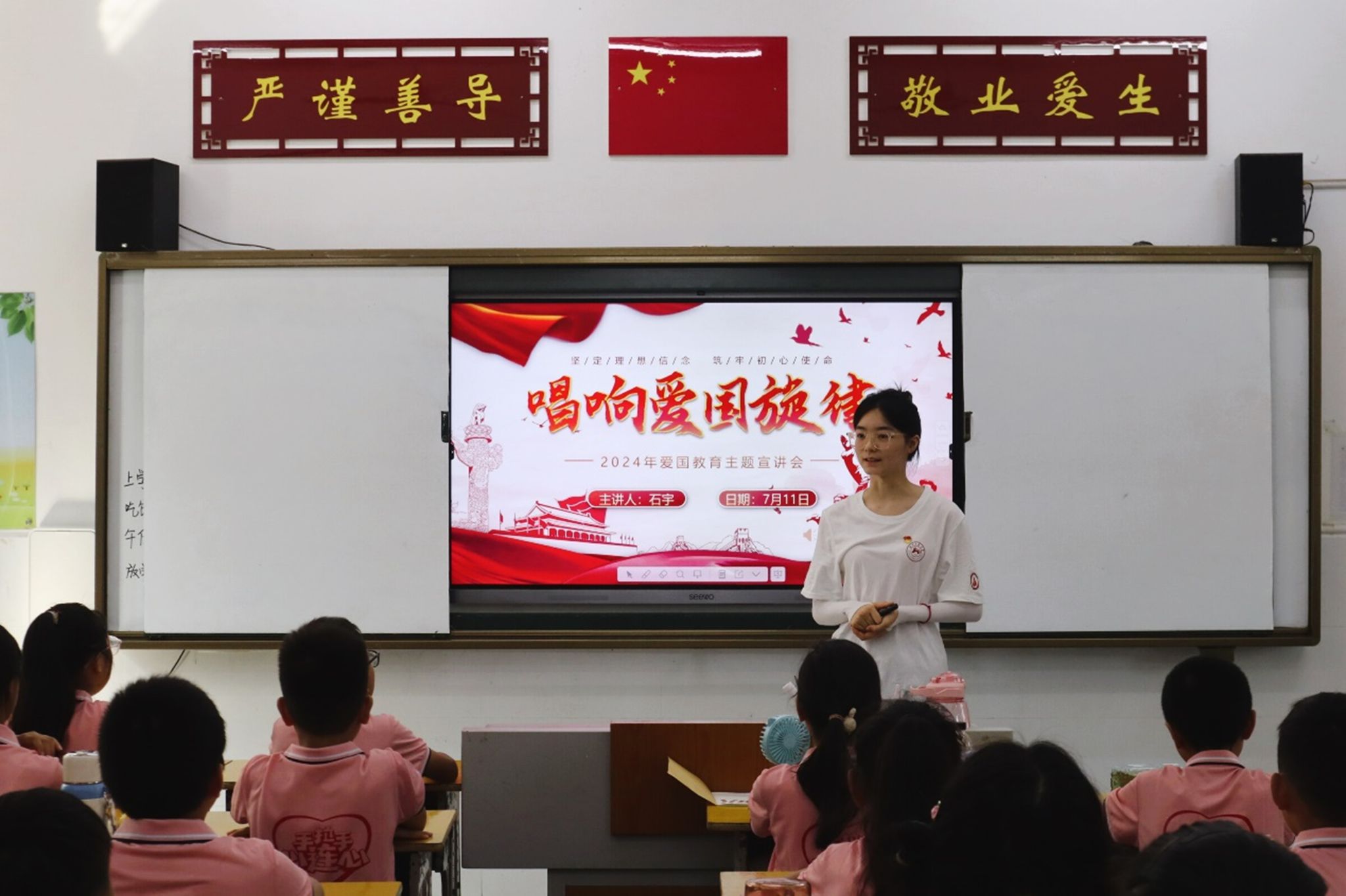 图片为红色论坛课主讲人为学生讲解唱响爱国旋律故事。她表示,此课堂通过播放红色革命影片,讲述革命先烈的故事等方式,让学生们深刻感受到革命先烈的英勇奋斗和无私奉献,从而培养他们的爱国主义精神。