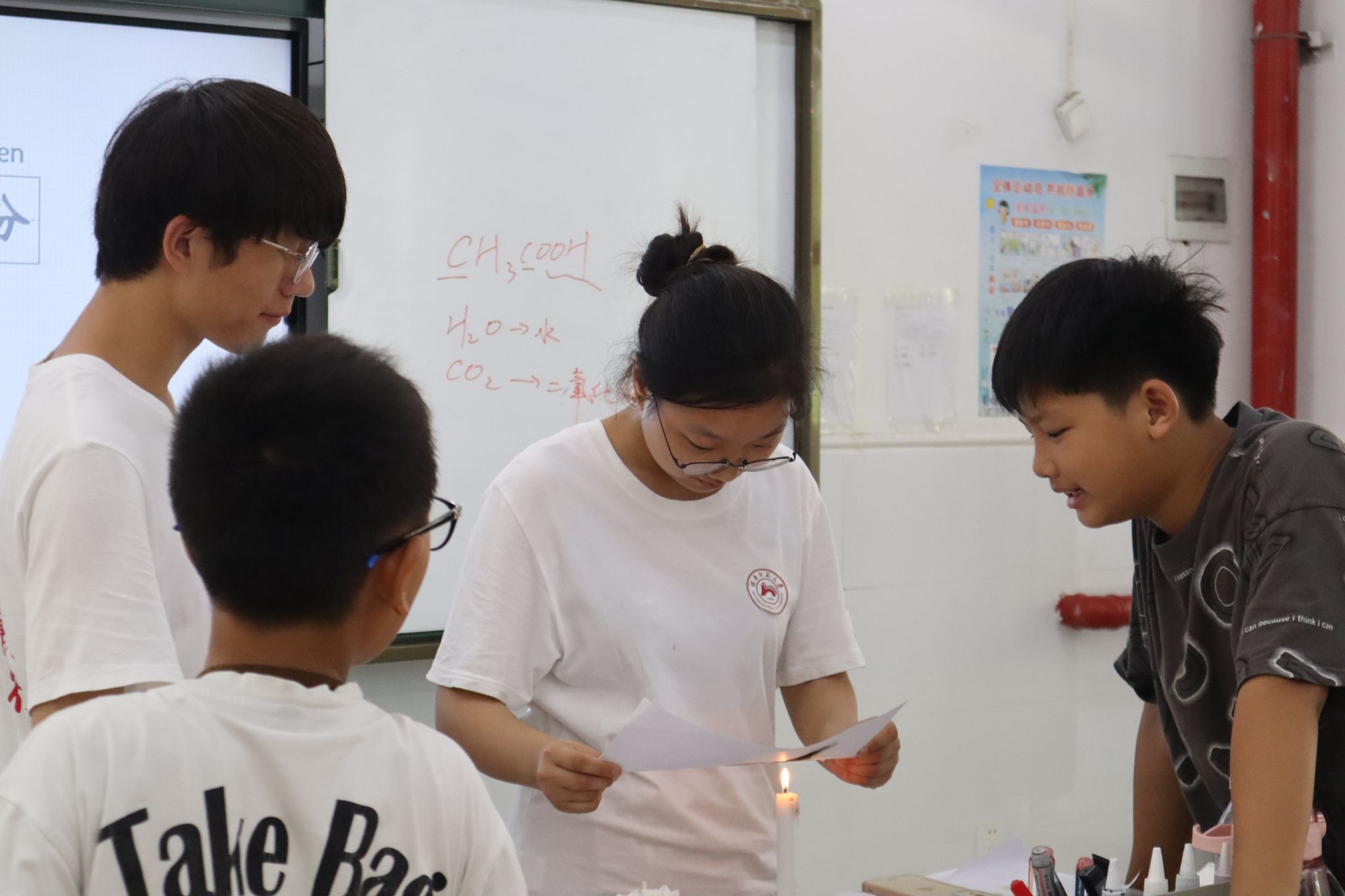 图为趣味实验课主讲人向学生展示“神奇的文字”实验。她表示,此次课堂旨在为学生提供一个充满乐趣、探索精神和实践机会的学习环境。它不仅仅是为了教授科学知识,更重要的是激发学生对科学的兴趣。