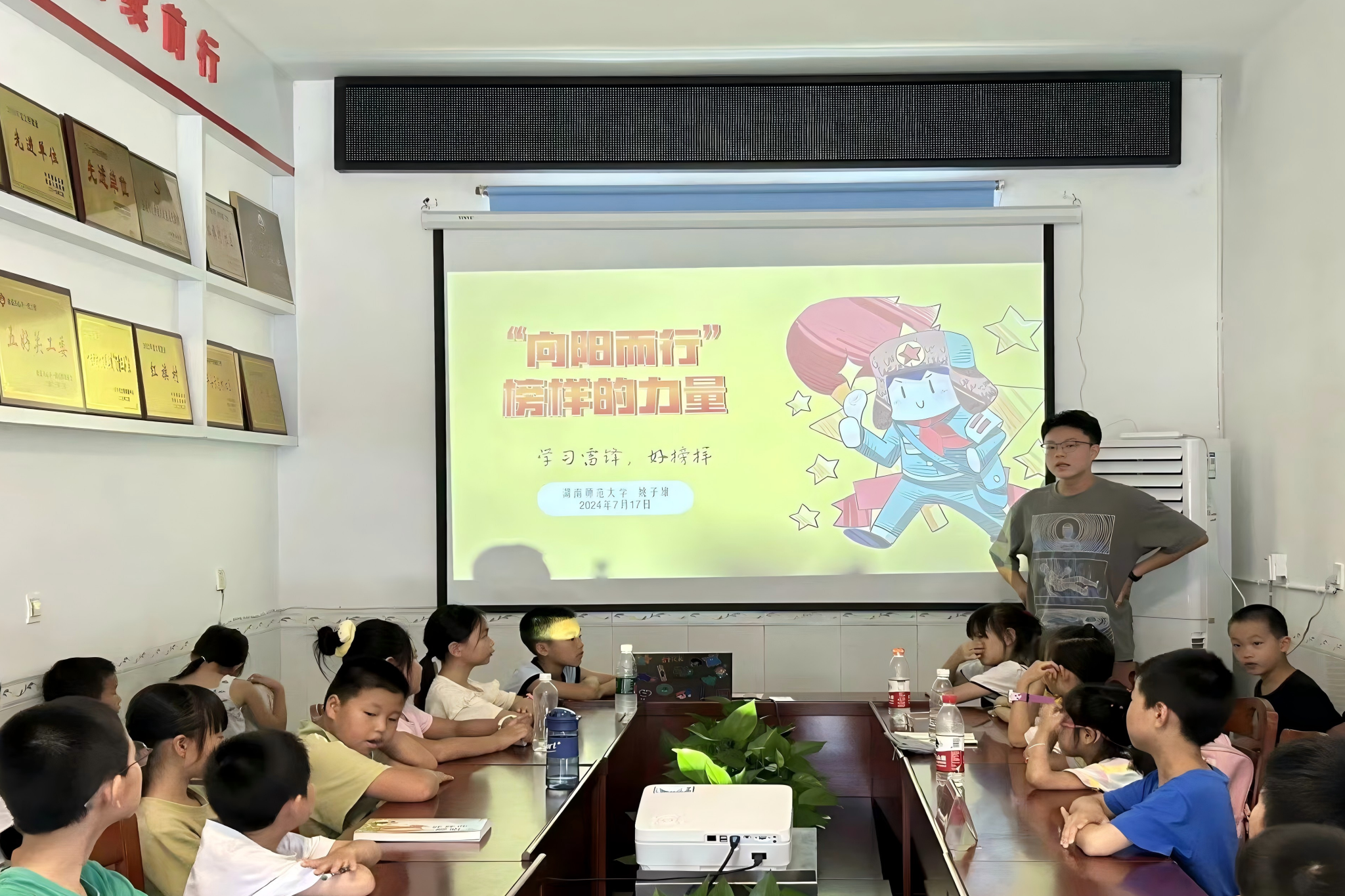 (通讯员 谢北)为帮助学生找寻新时代新征程上的领路人,引导学生汲取榜样力量,与榜样同心、同向、同行,7月23日上午,化学化工学院“麓山青年”暑期实践团在墙背村报告厅和会议室开展“向阳而行”——榜样的力量特色课程。此次课程由实践团成员周倩妮和姚子雄主讲,夏令营全体学生参与。