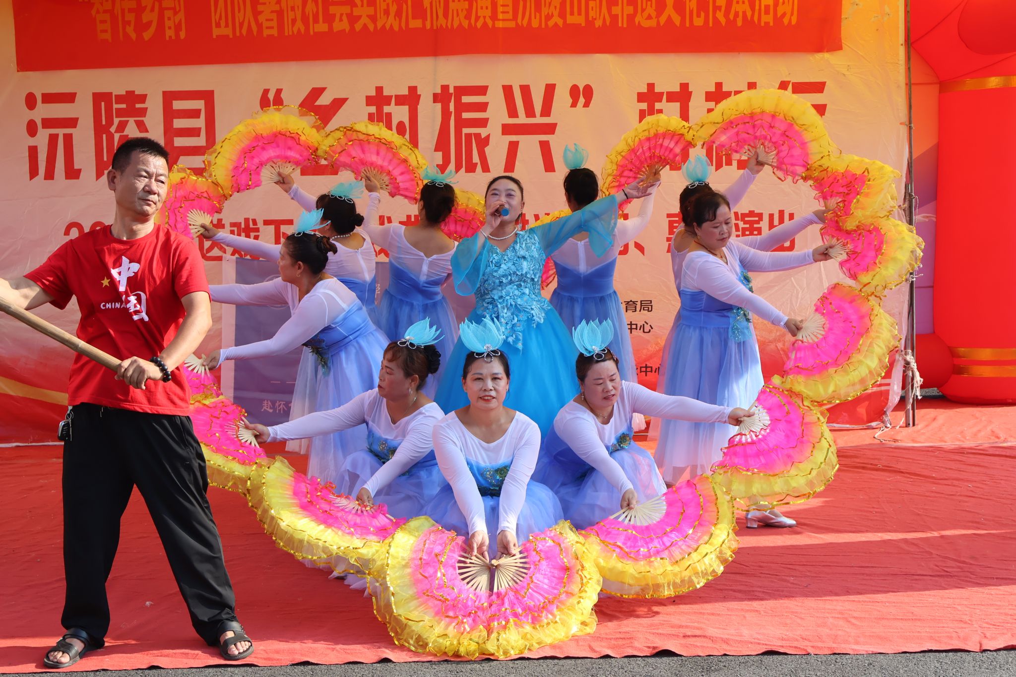 (通讯员 张耀丹 罗锦峰)7月26日,太阳成集团tyc新闻与传播学院“智传乡韵”团队暑期社会实践汇报展演暨沅陵蓝溪山歌团山歌非遗文化传承活动在岩板铺村委会举办。本次活动不仅为学生们展示自我提供了舞台,还探索了沅陵山歌传承发展的新路径。