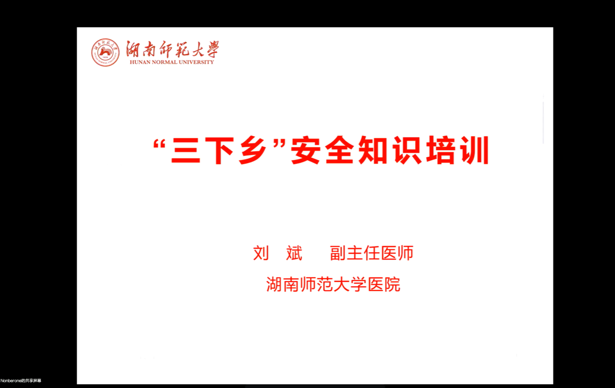 7月1日,校团委联合校医院开展三下乡队伍安全知识培训。线上会议由校医院副主任医师刘斌主讲,主要内容是急救技能与安全知识普及。培训中,主讲人详细讲解中暑、烧烫伤、电击伤、溺水、犬咬伤、鼻出血、食物中毒、蚊虫叮咬等多方面突发情况应对处理的措施、注意事项。此外,校医院为 220 余支三下乡团队准备了“应急救护包”,包内备有用于防暑降温蚊虫叮咬、感冒、发热、扭伤、擦伤等常见疾患的非处方类药品,及急救包扎包、三角巾、绷带等应急救护物品。