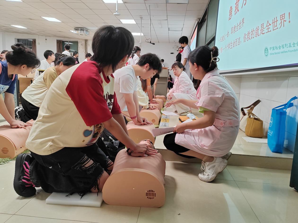 7月2日—3日,校医院联合长沙市红十字会在至善楼110教室举办两场急救知识宣传活动。活动由红十字会成员主讲,通过图文讲解和视频演示如何呼救、如何做好心肺复苏前的准备等,通过模型实地演示如何判断意识、如何进行胸外按压、清理口腔异物、开放气道、人工呼吸等急救操作要领,并现场指导实践队伍成员进行实操练习。主讲人还通过发放知识问卷、现场问答等方式了解同学们的掌握情况。