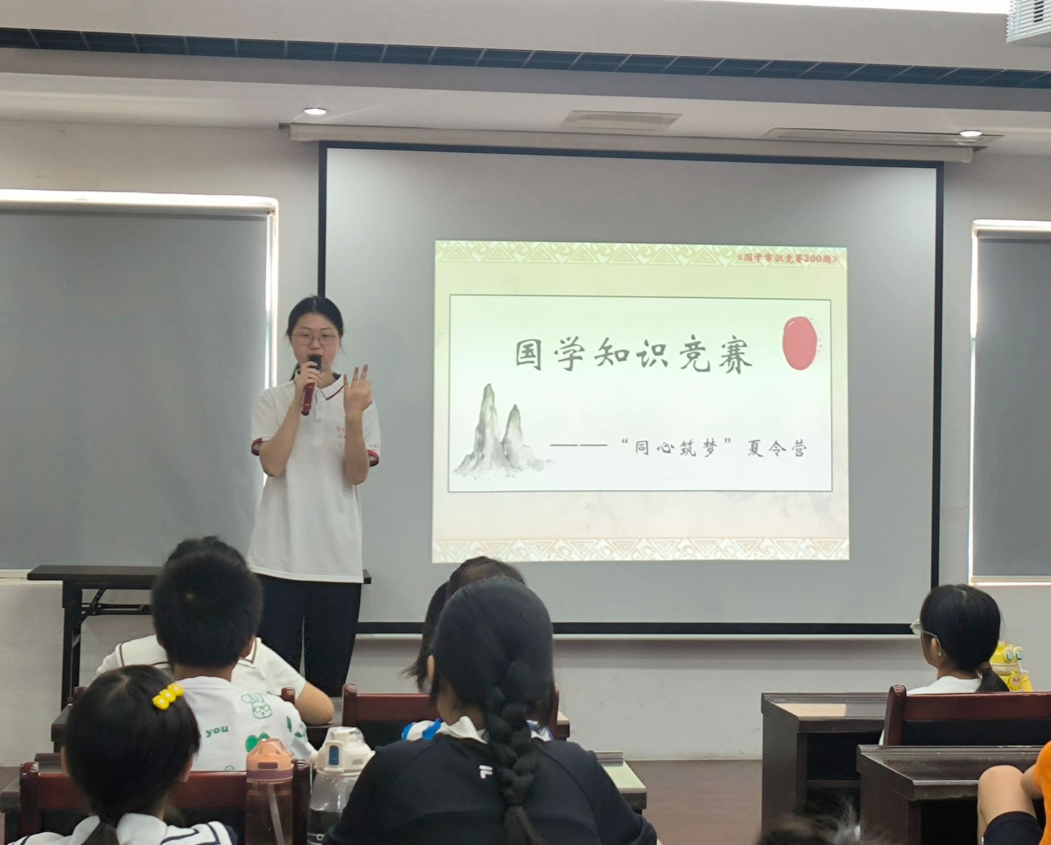(通讯员 唐聿燕 曾玢)为鼓励学生重温国学经典,传承文化血脉,8月1日上午,马克思主义学院“同心筑梦”暑期社会实践团(以下简称实践团)在同心园社区服务中心开展了以“古韵今声,礼乐共鸣”为主题的国学知识竞赛。此次竞赛由实践团成员主持,社区志愿者及全体学生共同参加。
