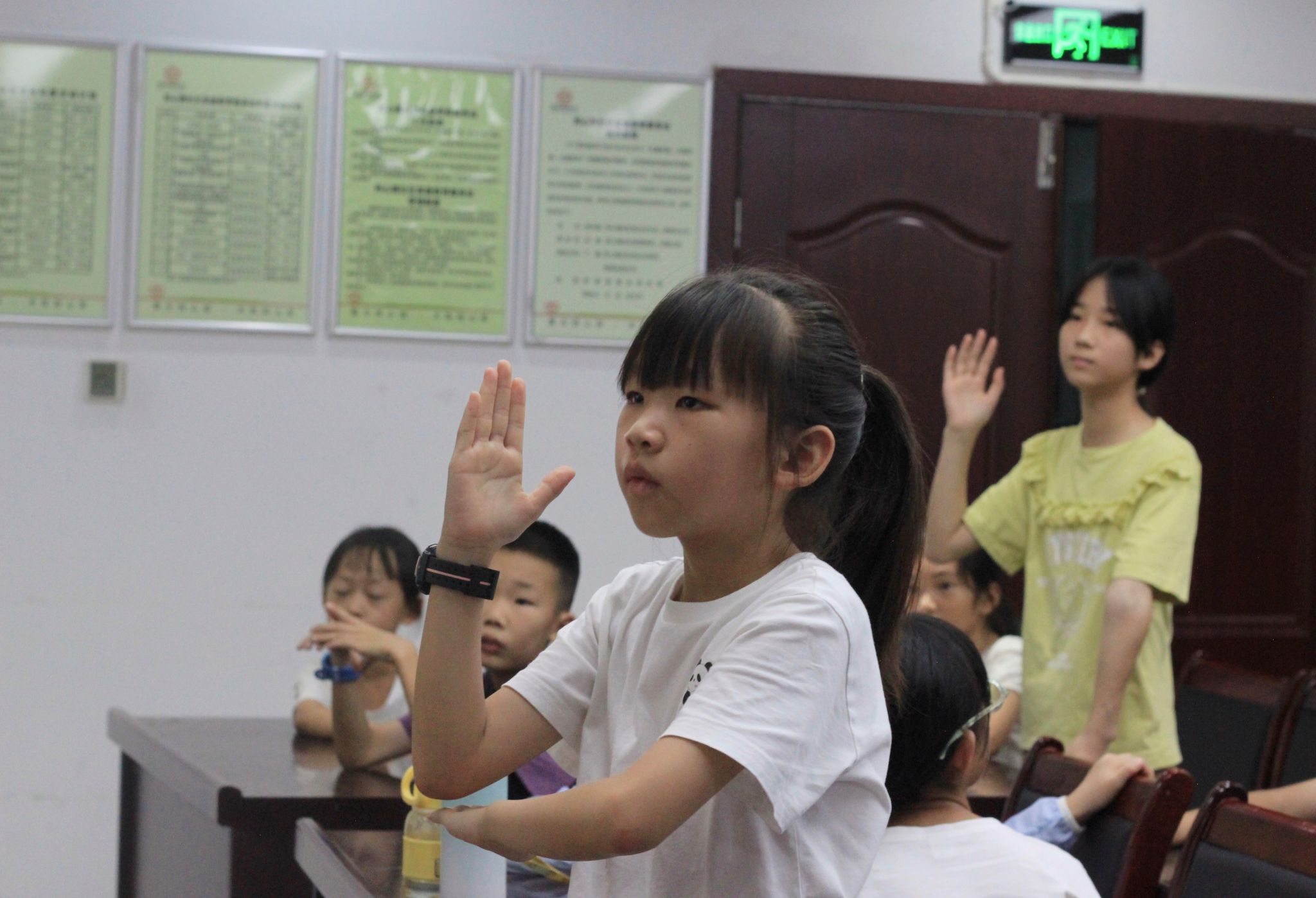 学生举手抢答竞赛题目