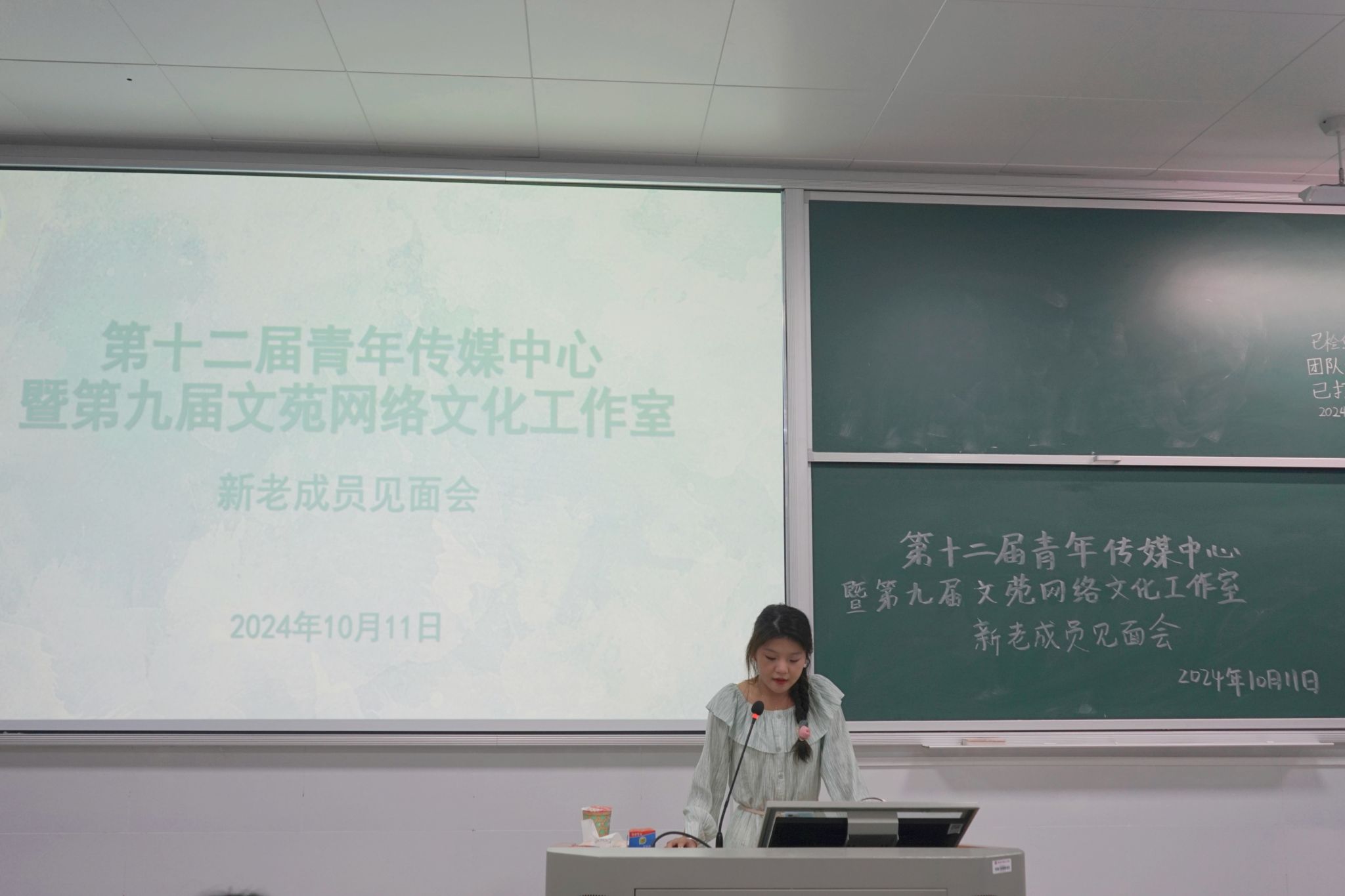 (通讯员 万航燕 谢玎璨 范文宣)10月11日晚,文学院第十二届青年传媒中心(下文简称“青传”)在文渊楼302教室开展新老成员见面会。此次见面会由青传主任余意统筹组织,青传公共事务部部长毛玲子主持,各部门负责人及全体志愿者参加。