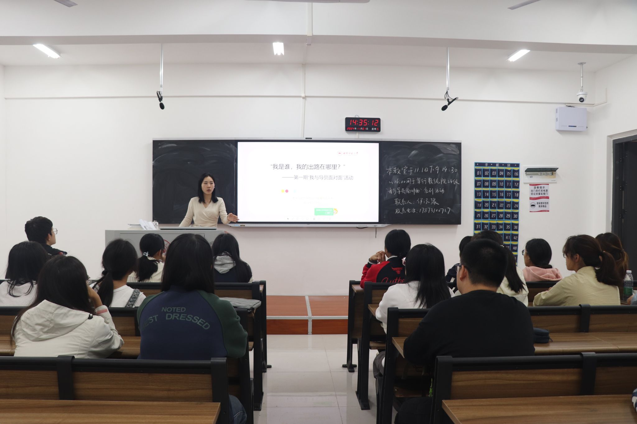 (通讯员 陶薇羽 杨漾 汤誉琳)为深入了解同学们在学习和生活中存在的问题,向同学们提供一个与导员交流沟通的平台,11月1日下午,数学与统计学院(以下简称“数统院”)于桃花坪校区实训楼102教室开展第一期“我与导员面对面”活动,活动主题为“我是谁,我的出路在哪里”。数统院2024级辅导员刘美主持活动,2024级部分学生参与活动。