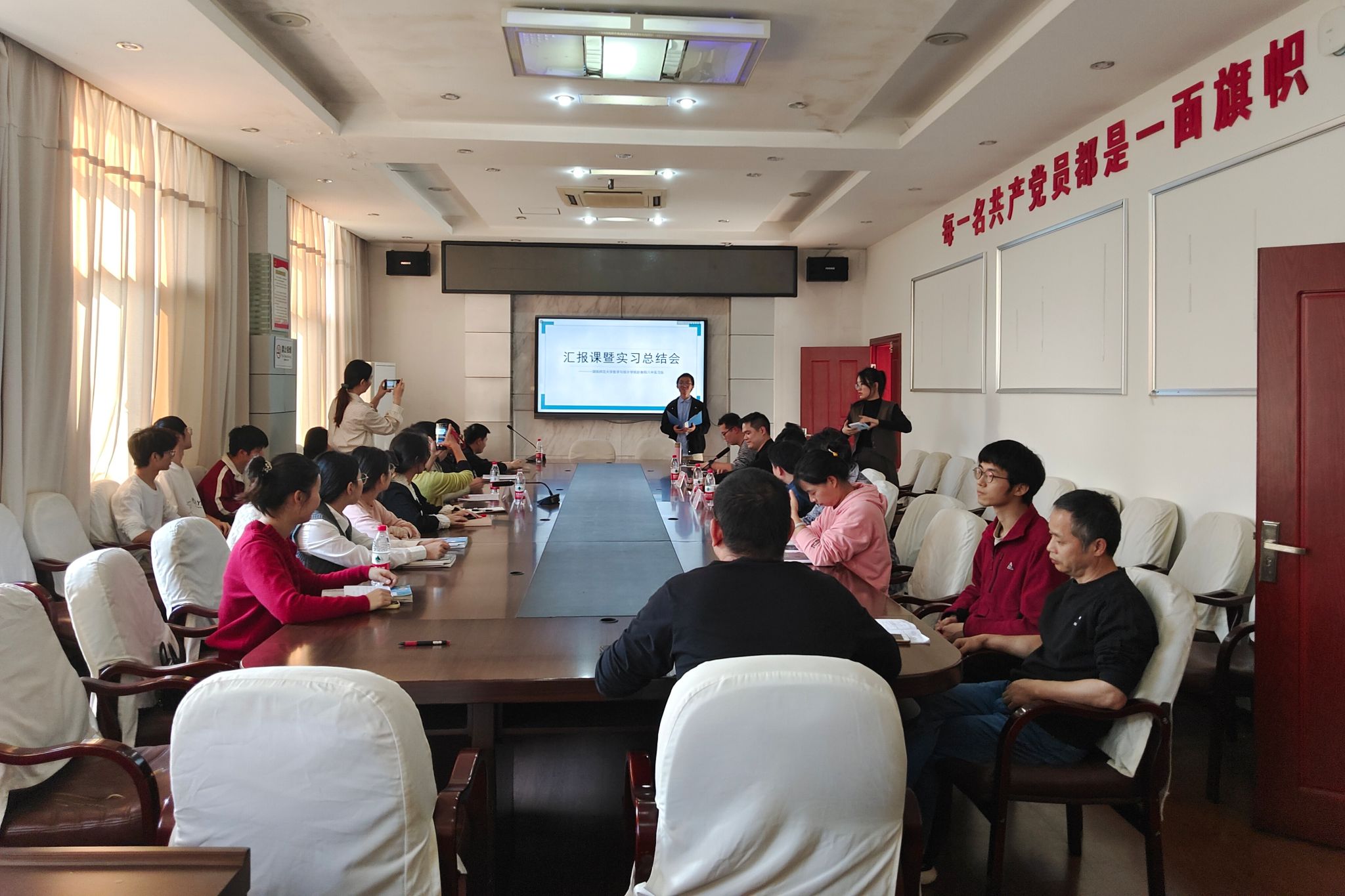 (通讯员 邓欣蕾 张馨元 曹慧娟)11月6日下午,数学与统计学院(以下简称“数统院”)赴衡阳市第八中学教育实习队(以下简称“实习队”)开展实习汇报展示暨实习总结会。数统院党委书记颜中玉、学院带队教师卓次强、衡阳市第八中学副校长张贤华、教研处主任肖中秋、指导教师周德平等及全体实习生参加会议。会议由衡阳市第八中学教务处副主任曾小权主持。