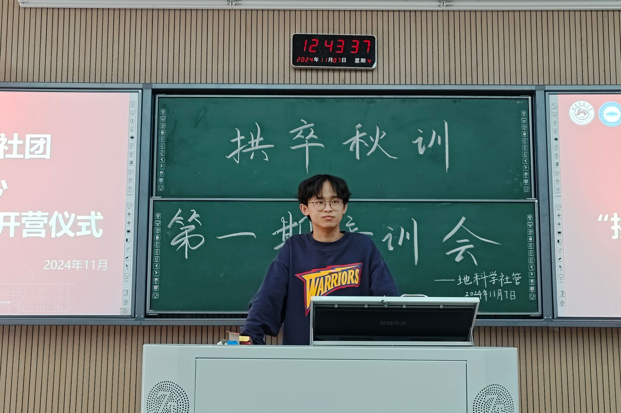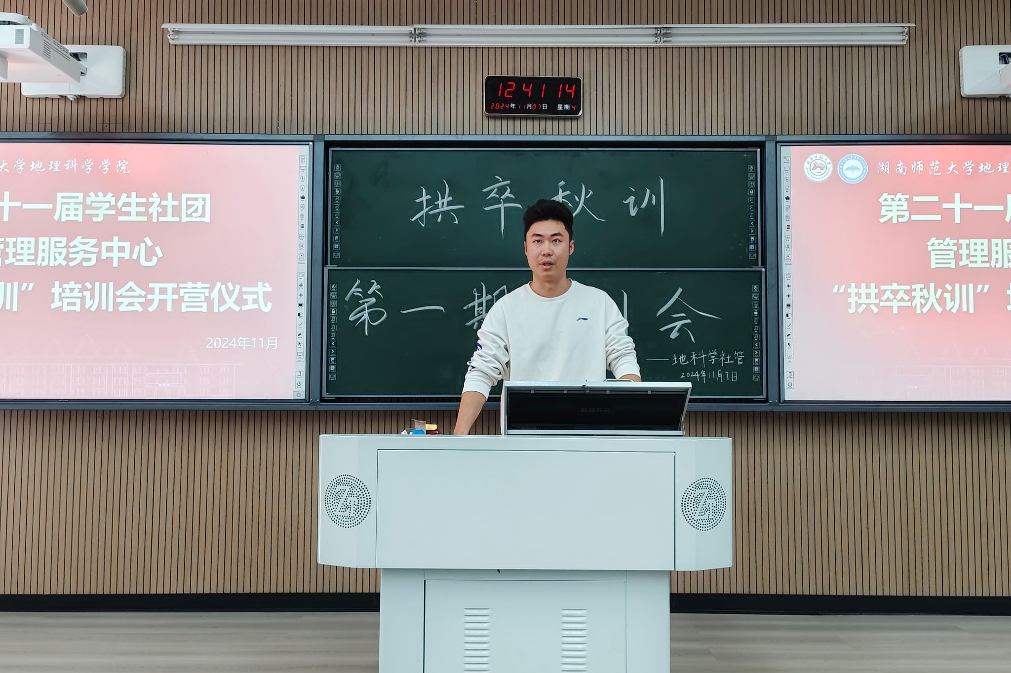 (通讯员 潘慧 唐文鑫)为提升学生干部们的综合能力,11月7日中午,地理科学学院(以下简称“地科院”)学生社团管理服务中心于桃花坪达美楼附二教室举办第三届“拱卒秋训”开班仪式暨第一期培训会。地科院2024级辅导员江鉴廷参加此次会议,学社管全体成员共同参加此次培训。