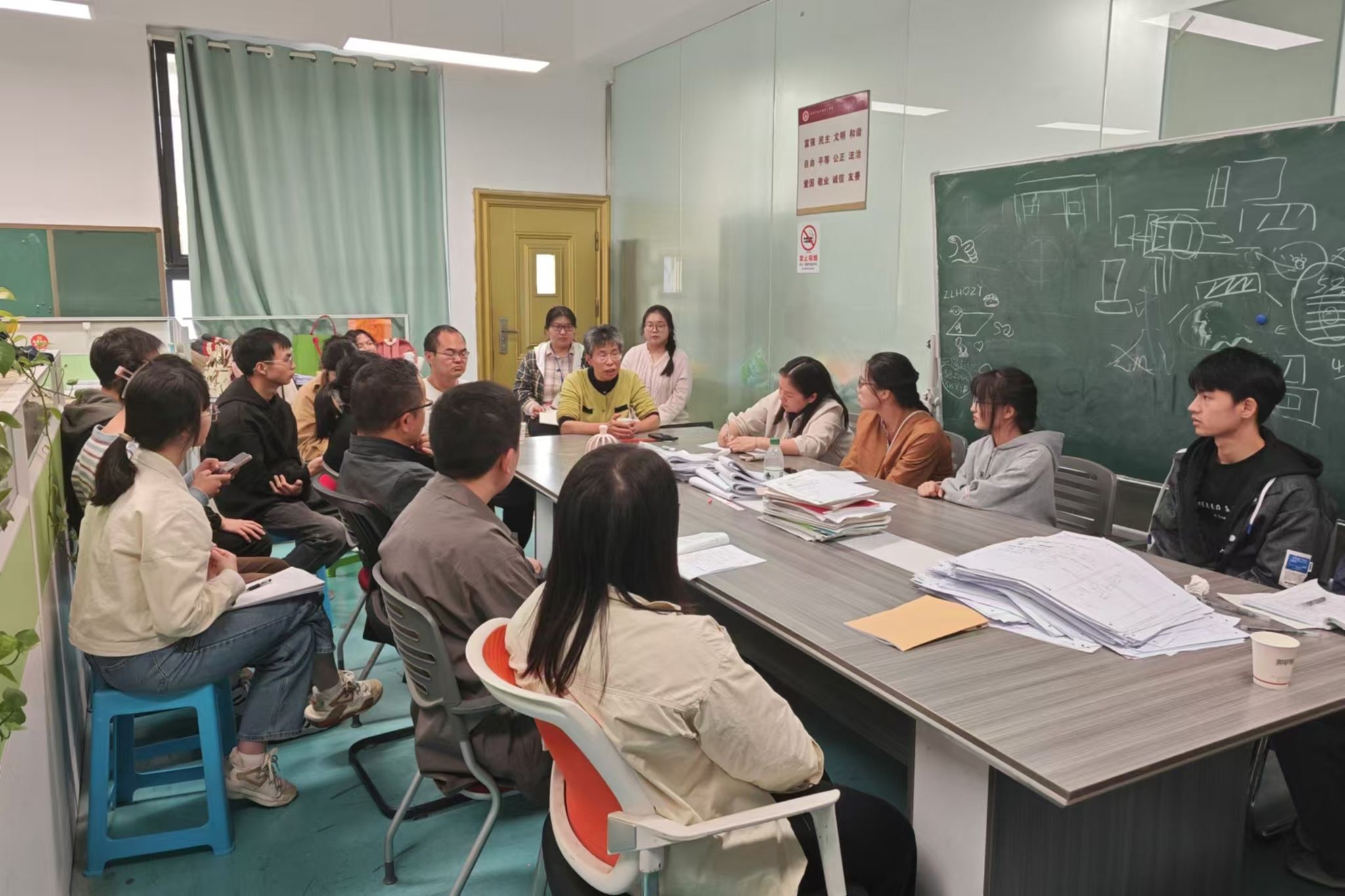 课后评议环节,各位领导和老师从课前准备、教学设计、教学技巧等多个方面对尹显祥的汇报课进行了深入分析,并给予了高度评价。刘思晟特别点评了此次公开课的亮点,并鼓励实习队员们在实习结束后,带着反思与感悟做好总结,为今后的职业生涯奠定坚实基础。