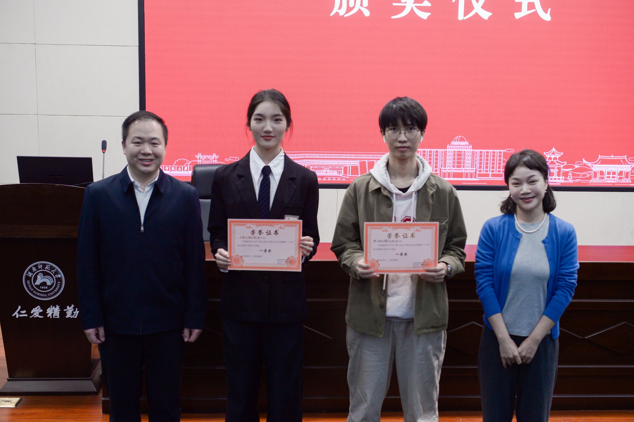 张永涛、吴小俐为一等奖获奖团队代表颁奖