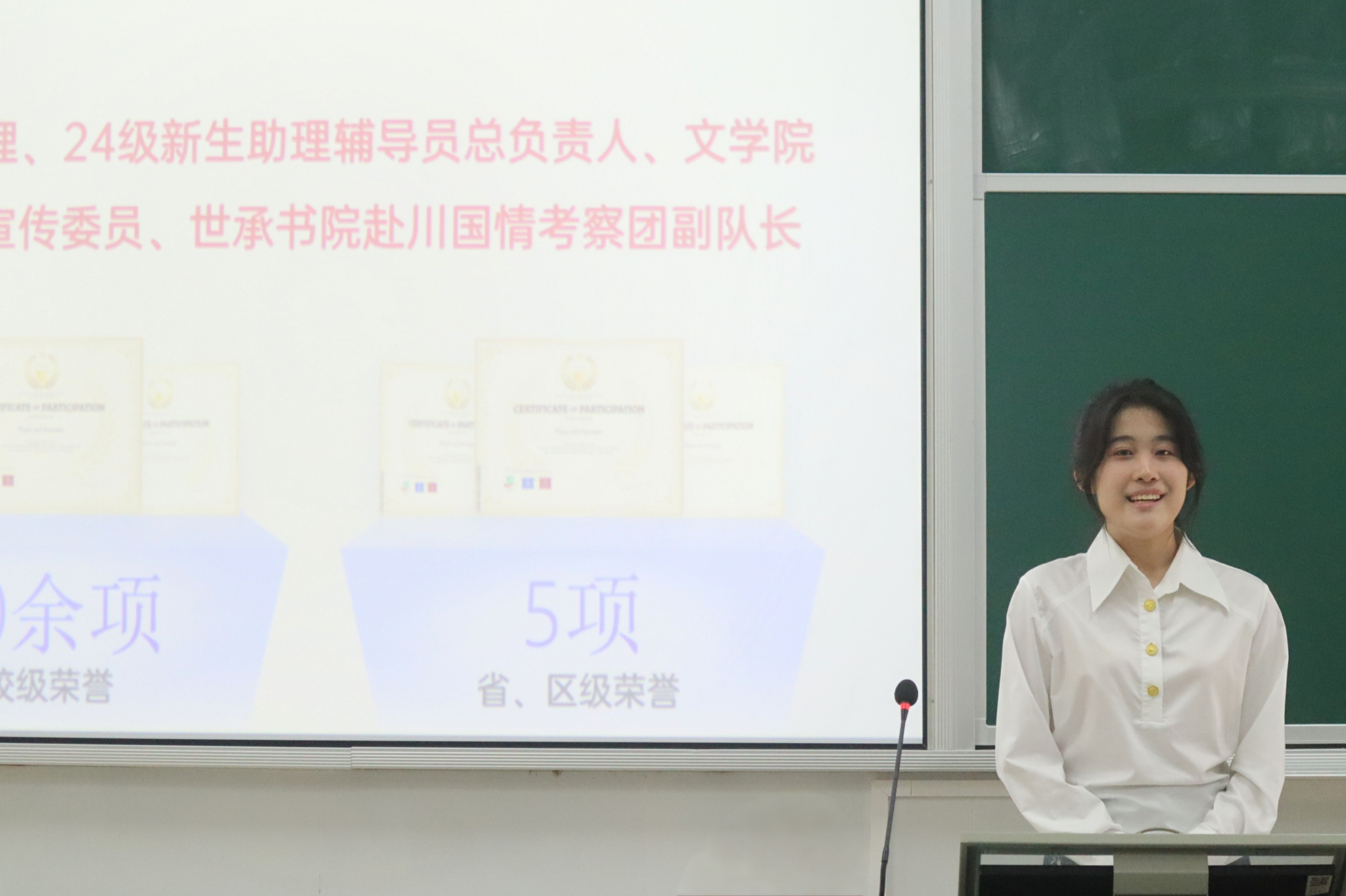 (通讯员 李青怀 向心瑶 范文宣)为加强大学生生涯教育和就业指导,增强大学生职业规划意识,指导他们提前做好就业准备,促进高质量充分就业,11月15日,文学院在文渊楼317教室举办“新东方杯”太阳成集团tyc第二届大学生职业规划大赛选拔赛。文学院党委副书记刘宓蜜、学工办全体老师以及两位首届优秀选手担任评委。