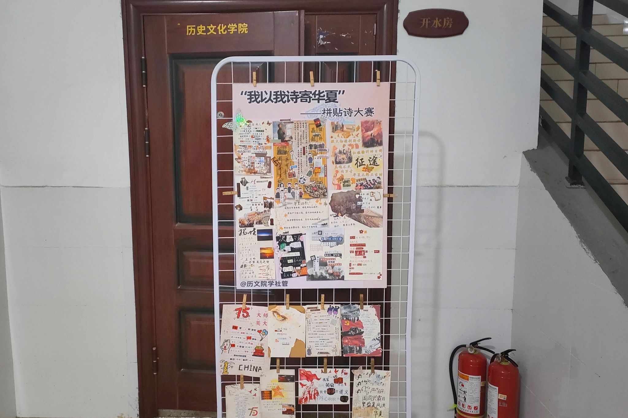 活动于10月20日正式开始,在张公岭校区和二里半校区两地同时进行。学生积极参加并通过绘画、贴纸、诗词等多种艺术形式创作多幅优秀拼贴诗作品,为作品注入个人思考和爱国情感。10月27日由工作人员收集全部作品并进行初审,后提交给院关工委常务副主任赵士国和学工办主任陈敏两位大赛评委。评委们从诗歌内容、页面布局等多方面对参赛作品进行评审,注重作品的原创性、设计性与主题性,最终于11月15日选出“最佳内容奖”12人和“最佳设计奖”12人。评审结束后,优秀作品和获奖作品分别于张公岭综合楼三楼和文渊楼一楼进行展示。