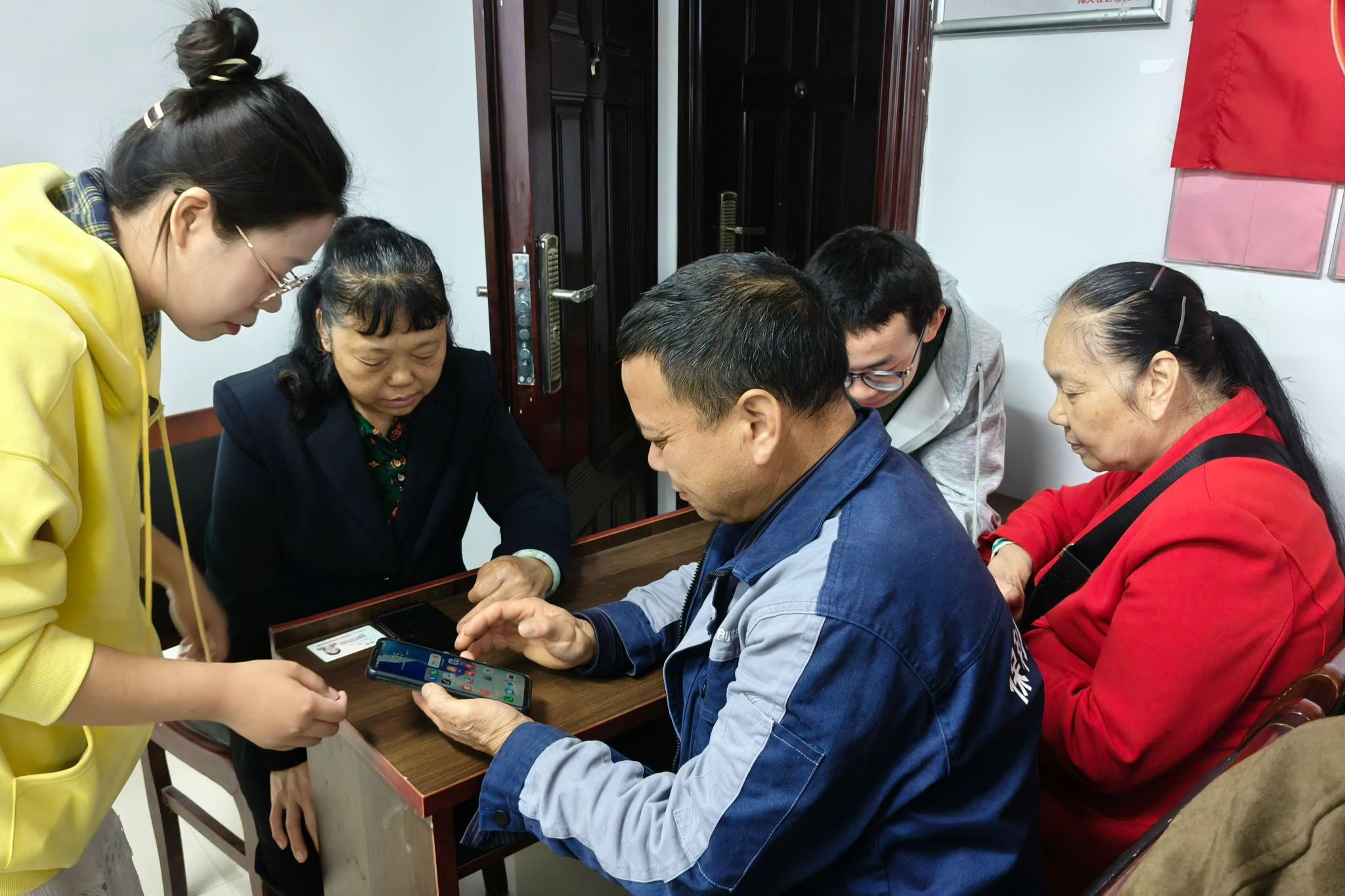 志愿者协助老人进行视频剪辑