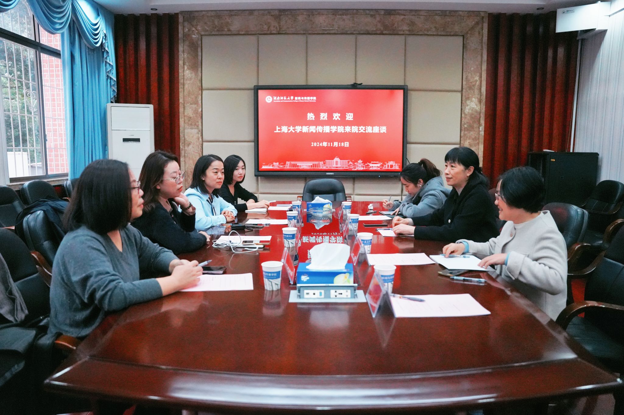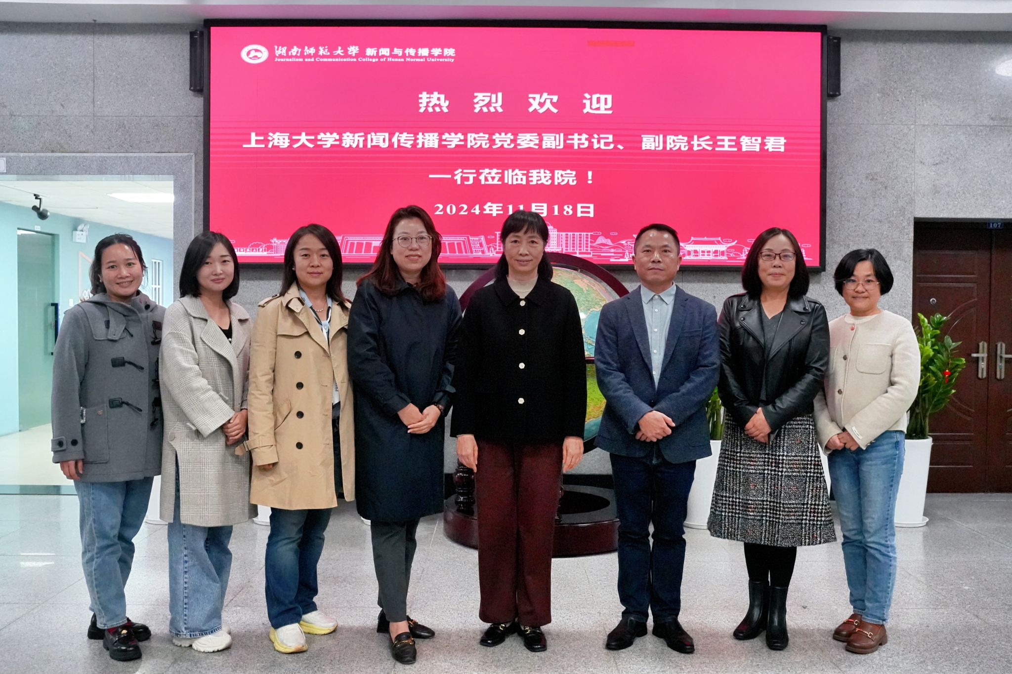 (通讯员 王兆星 蔡明邑)为促进学术交流与合作,分享教学经验,拓展学生交流渠道。11月18日,上海大学新闻传播学院院党委书记、副院长王智君一行赴新闻与传播学院进行调研,新传院正处级组织员王云,院组织人事秘书丁畅,院学工办主任、本科生党支部书记欧阳丹玲出席此次研讨会。