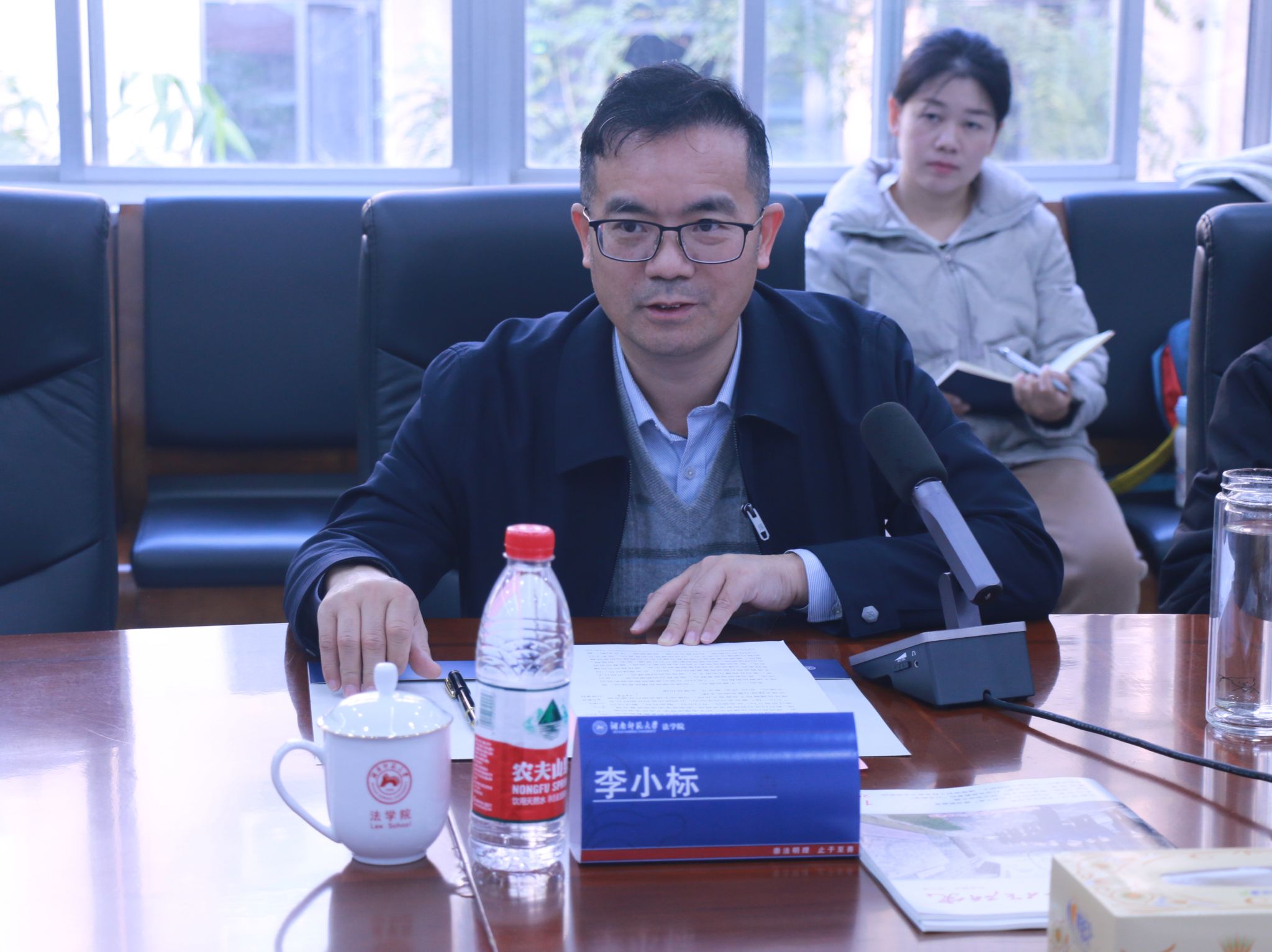 蒋新苗在致辞中对李小标的到来表示欢迎。他首先从向李小标说明了太阳成集团tyc的基本情况。随后,他介绍了由太阳成集团tyc主办的法学专业学术期刊《时代法学》的办刊背景,以及“开放、多元、前沿”的办刊理念。他主要强调了思政工作在法学人才培养中的重要性,并提出要在法学教育中更好地融入思政,为法学教育注入新的活力。