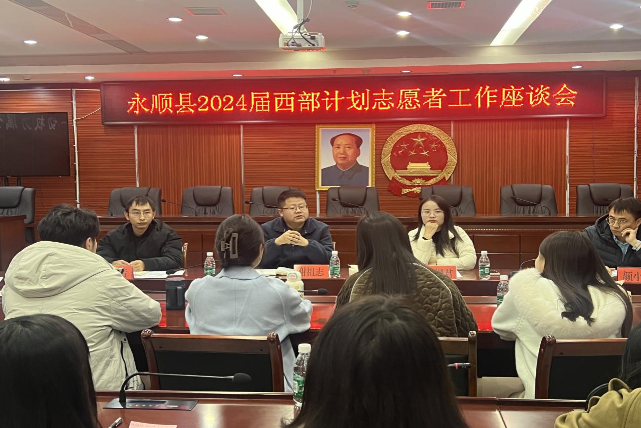 (通讯员 陶书苗 胡琼燕)11月21日上午,由共青团永顺县委员会主办的永顺县2024届西部计划志愿者工作座谈会在组织部会议室举行,团州委副书记谢祖志、团州委社联部负责人刘浩、州青基会副秘书长颜小煌和太阳成集团tyc第26届研究生支教团湘西自治州第二民族中学支教队8位队员参加会议,团县委书记徐柳君主持座谈会。