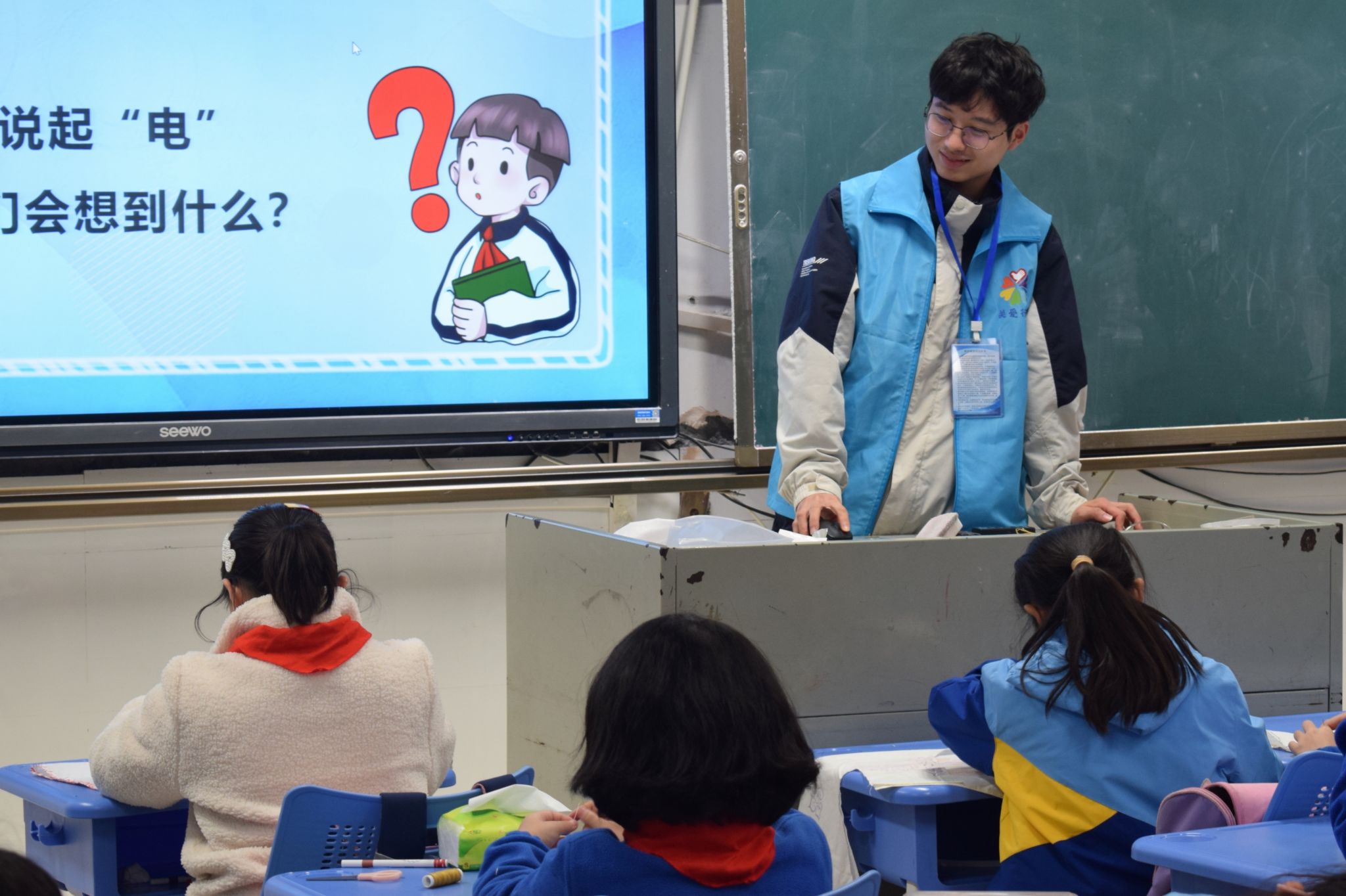 主讲人引导学生学习电的相关知识