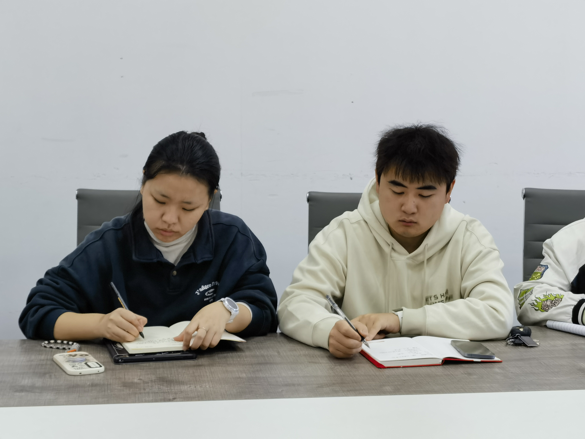 图为研支团成员摘录邓郭欢书记分享的教学经验