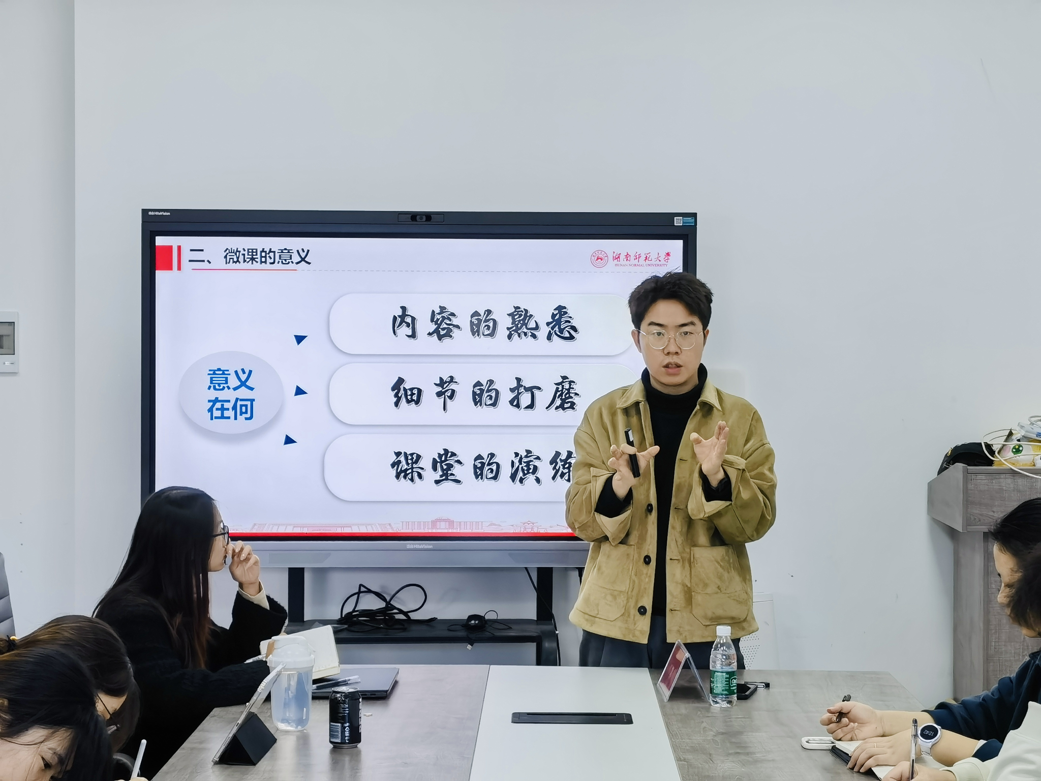 邓郭欢从微课的概念切入,强调微课并非简单的内容压缩,而是需要求精、求活、求深,并详细阐述了微课的重要意义。在谈到如何让自己的微课更出彩时,邓郭欢学长建议研支团成员们可以从模仿开始,学习青教赛、田家炳等优秀教师的风格。此外,他还强调了深度钻研的重要性,鼓励大家多查阅中国知网等专业文献,不断提升自己的专业素养。在演练方面,邓郭欢提出反复上台演练是提升熟练度的关键,需要充分准备,展现出最好的自己。