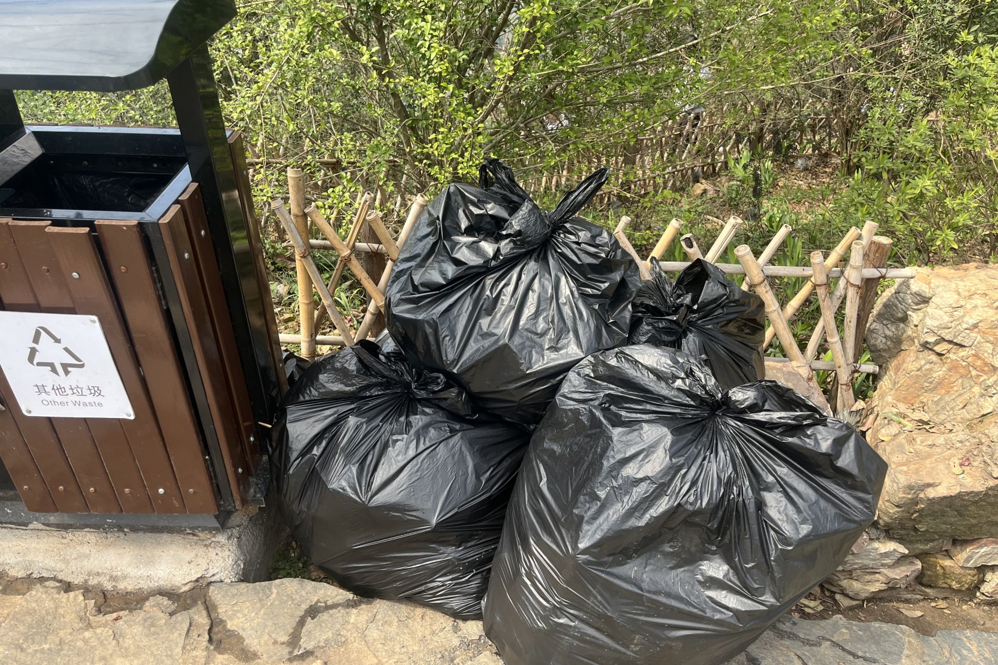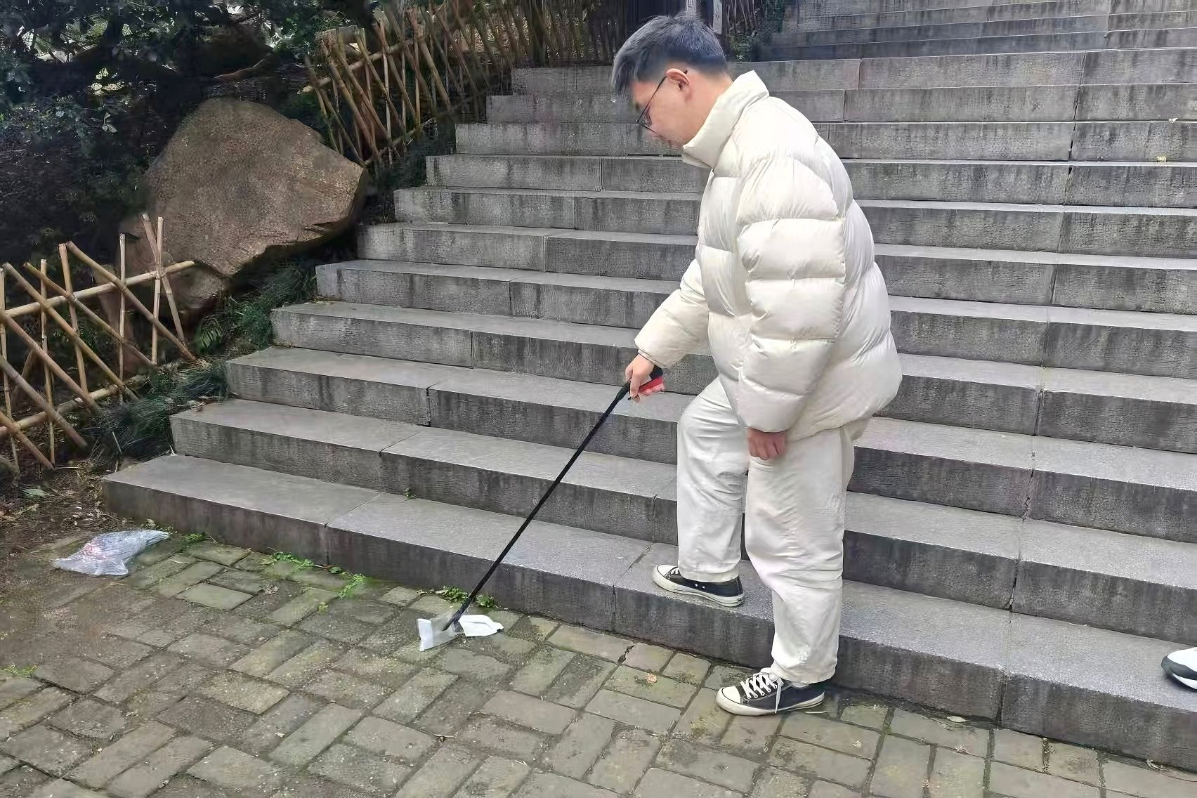志愿者拾取景区垃圾
