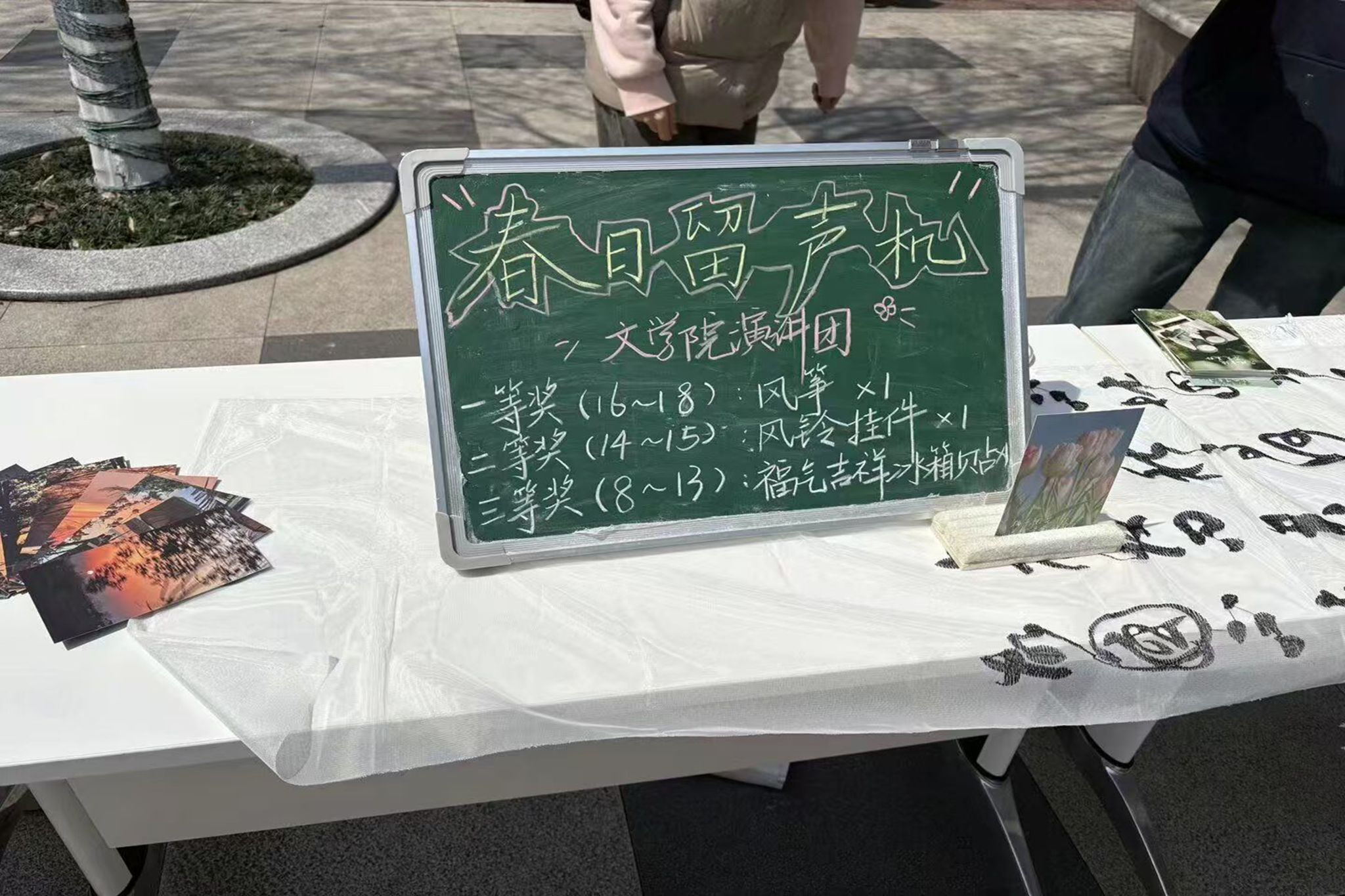 (通讯员 杨丹 孟紫茹)3月18号下午,为了让语言表达训练从户内走向户外,鼓励大学生勇敢交流,文学院演讲团在文渊楼前坪开展“春日留声机”活动。此次活动由演讲团各理事组织开展,面向全校师生,旨在用声音记录当下,用图片视频展现春天的美好,吸引了众多学生的参与。