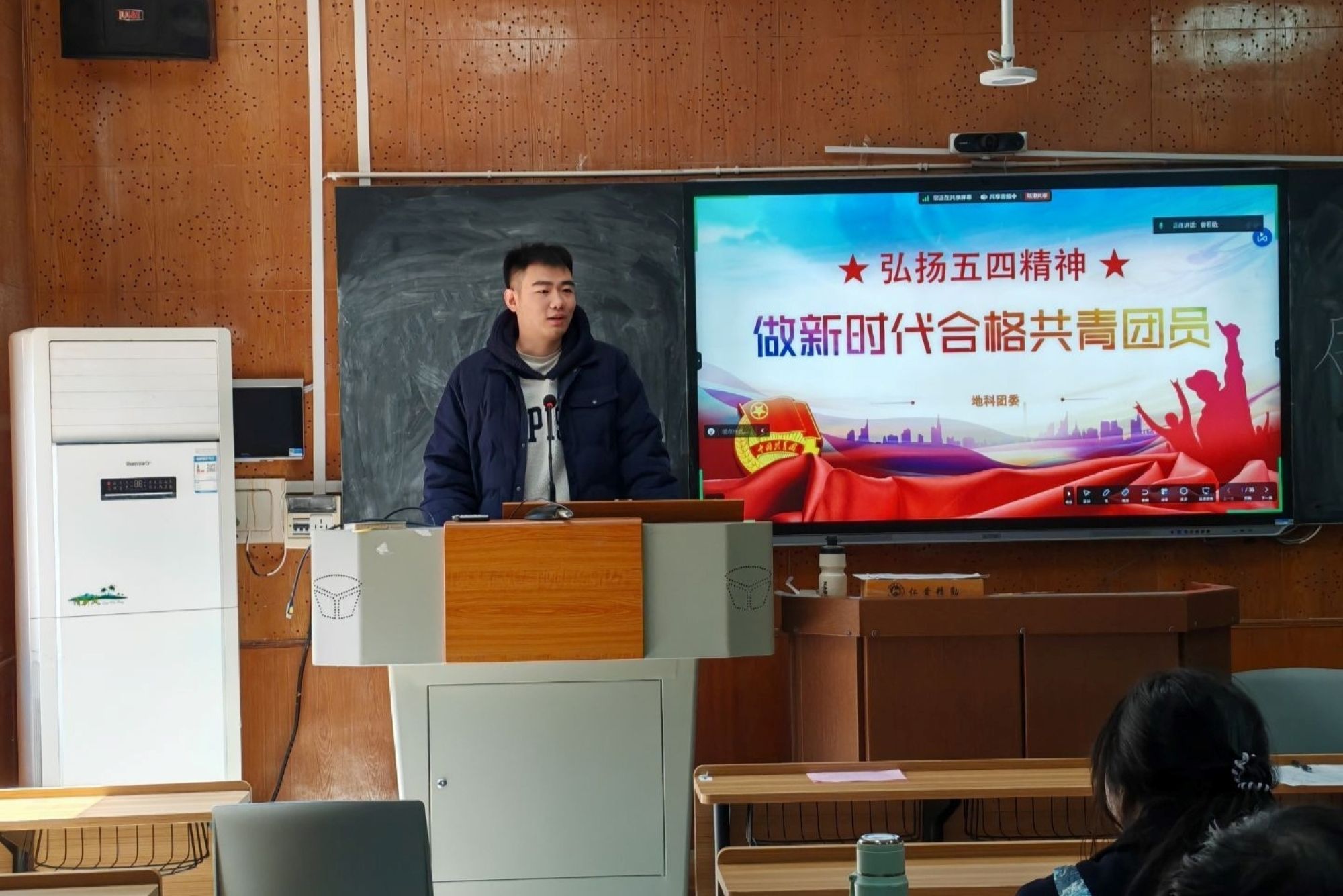 (通讯员 张思晗 陈南廷)3月19日中午,地理科学学院(以下简称“地科院”)第五次理论培训在经纬楼213教室、实训楼202教室举行。此次培训由地科院学工办主任周沐为学员讲解,青发部干事姚钰珂主持,地科院启明团校理论培训班全体学员参加。
