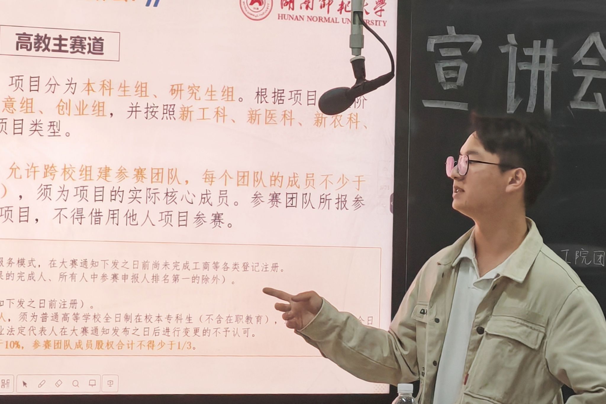 (通讯员 樊思乐 熊志惠)3月25日下午,化学化工学院团委青年创新创业部在化工院217教室举办2025年全国国际大学生创新大赛(原“互联网+”大赛)宣讲会。此次宣讲会由旅游学院2022级本科生杨於道担任主讲人,青年创新创业部干事陈柳蓉担任主持人,2022级、2023级及2024级部分同学参加此次活动。