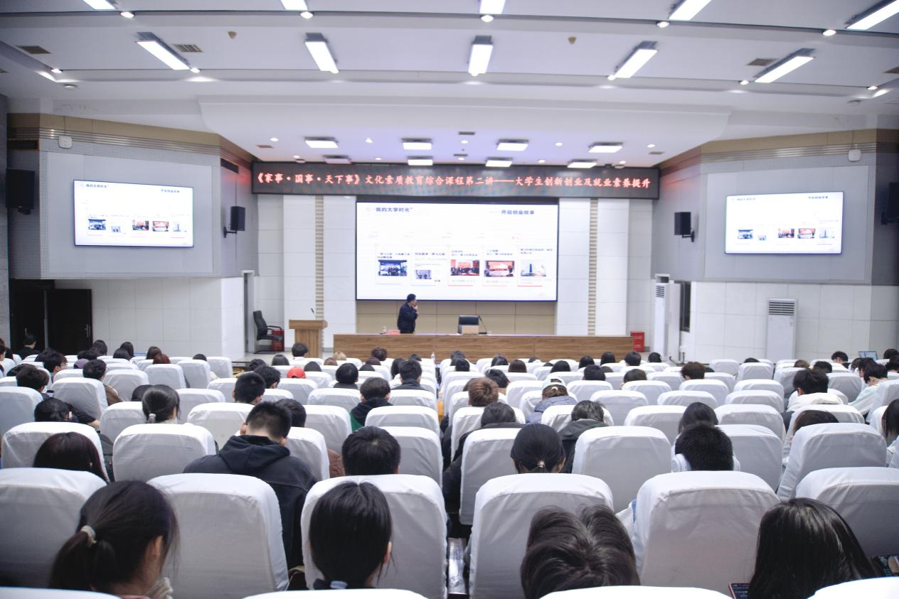讲座以“大学生创新创业及就业素养提升”为主题,胡含兵结合自身创业经历,激励同学们积极投身创新创业实践。他表示创新创业不能仅停留在理论层面,必须通过实践来检验和提升能力;鼓励同学们要勇于尝试,在实践中积累经验、磨练技能。在提升就业素养方面,他认为当代大学生应当注重培养核心竞争力,既要深耕专业领域,也要积极参与项目实践,同时还要重视职业资格认证和人际交往能力的提升。课程最后的提问环节中,同学们踊跃发言,现场气氛热烈。