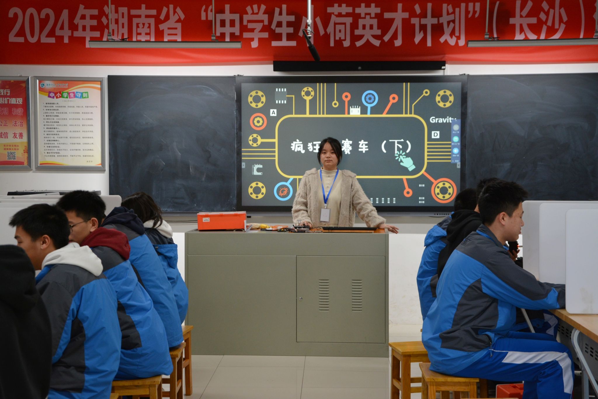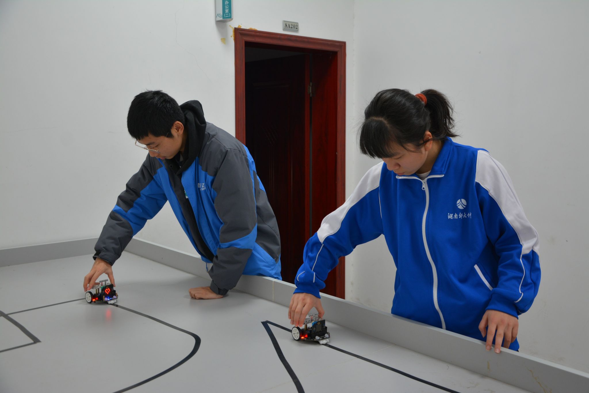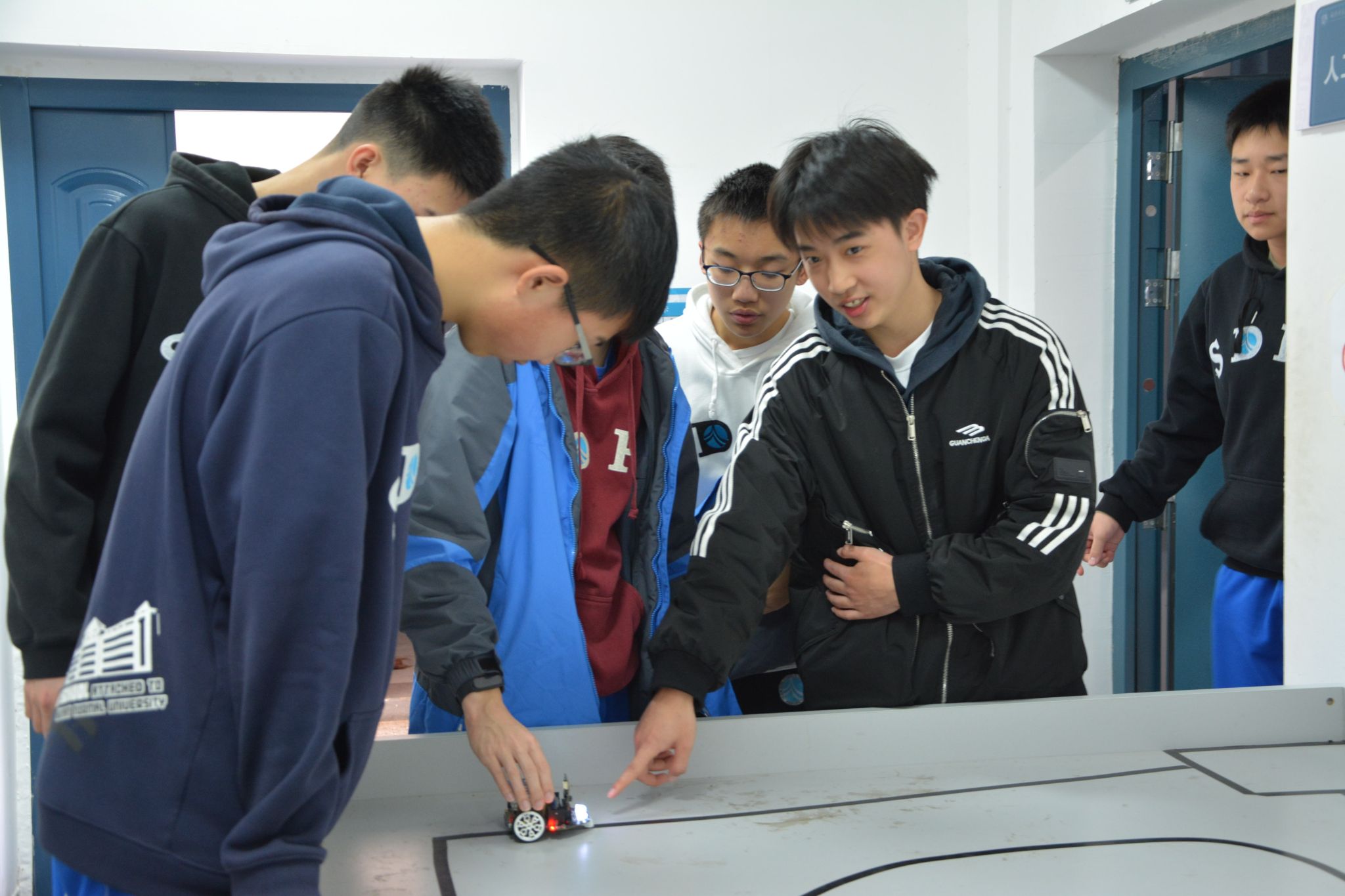 学生进行小车巡线实践