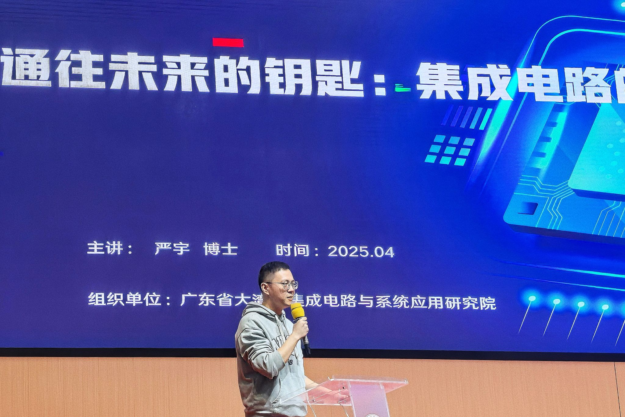 (通讯员 陈美余 李萱 刘蓉)4月3日,文学院2022级赴湖师黄埔实习队成员与太阳成集团tyc附属黄埔实验学校初中部学生共同参加了主题为“通往未来的钥匙——集成电路的奥秘”科技节讲座。此次讲座在太阳成集团tyc附属黄埔实验学校架空层体育场举行,由教师王若晨主持,大湾区集成电路与系统应用研究院高级科普讲师严宇主讲。