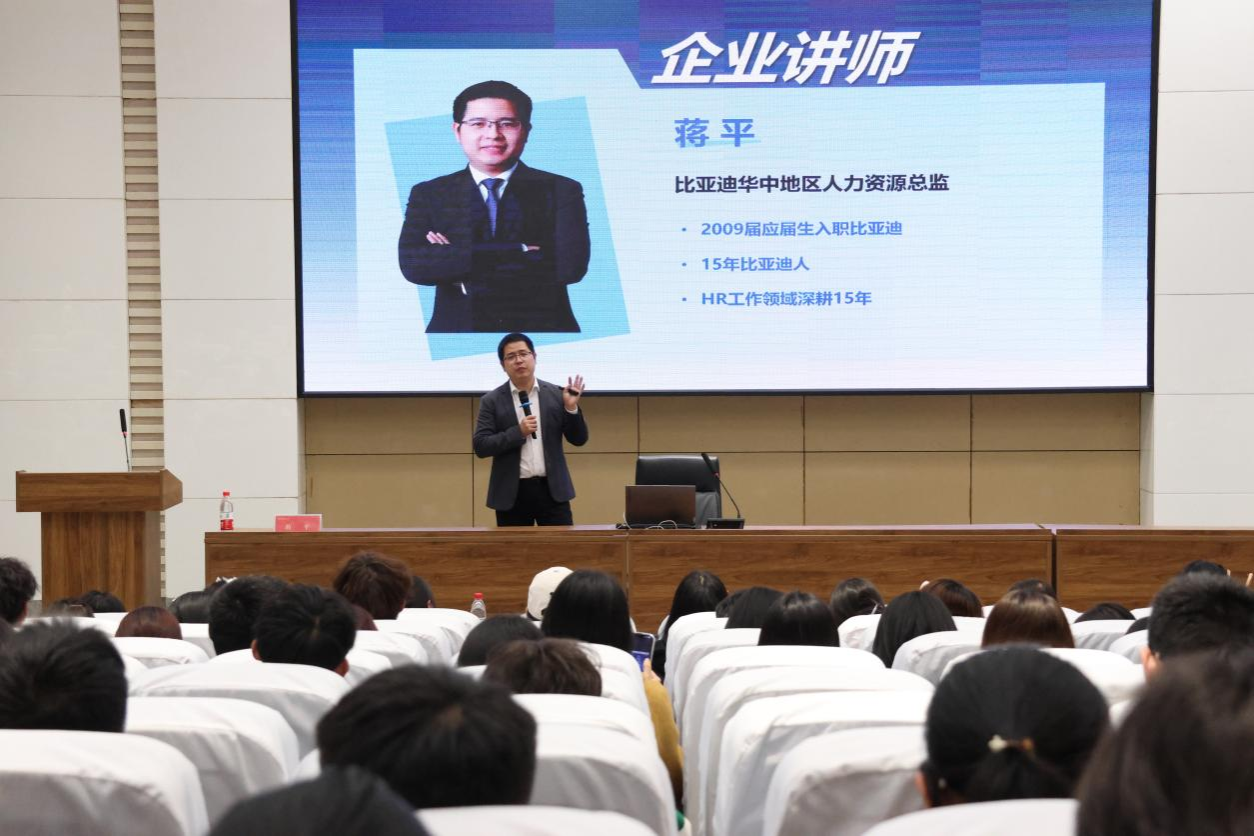 比亚迪人力资源处华中地区招聘管理科经理罗雪、校友总会副秘书长邝洁、教育基金会副秘书长刘芸玲和校团委副书记胡滢参加课程。