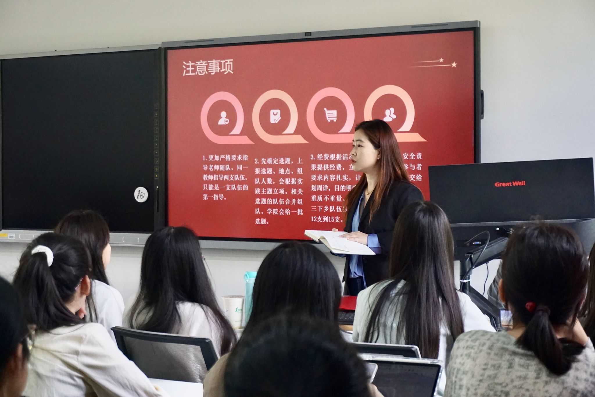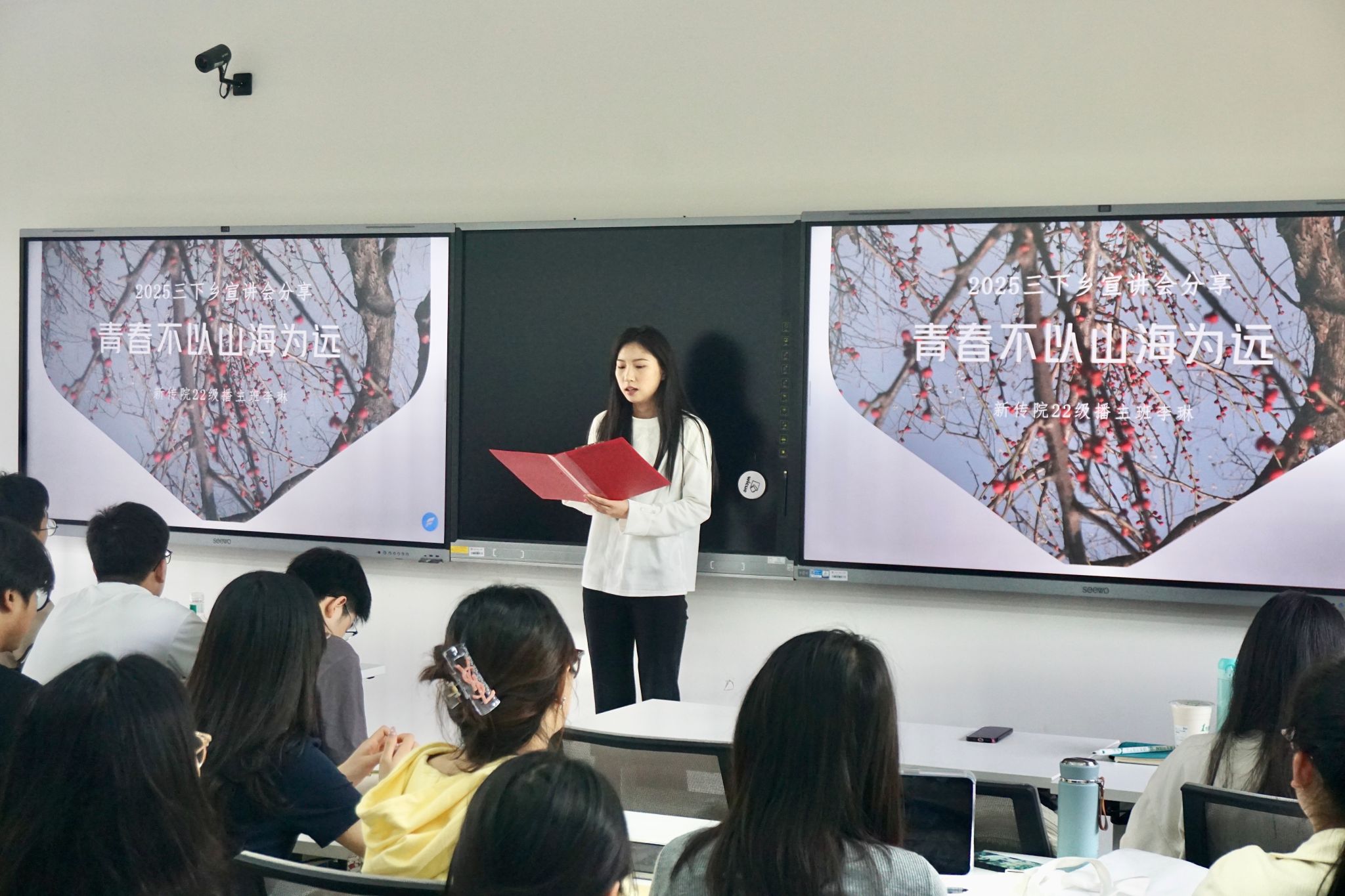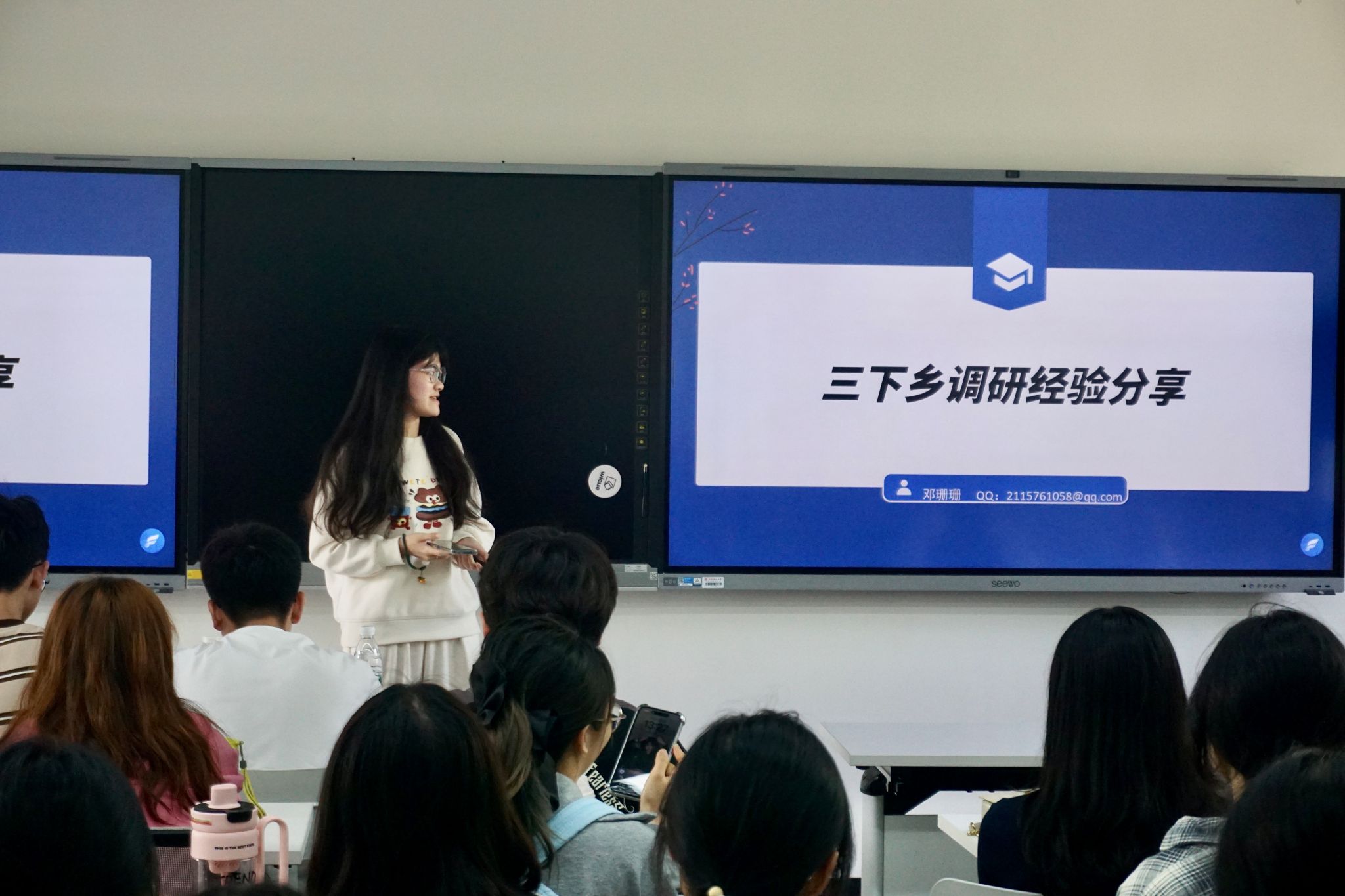 此次宣讲会,陈安琪结合往年“三下乡”活动实例,从新传院过往“三下乡”所取得的成果、“三下乡”对于学生成长的意义以及参与“三下乡”的重要事项等进行介绍。她谈到,“三下乡”是一种特殊类型的志愿服务,在决定参与前应做好充足的心理准备。同时,她谈及选题对于整个活动的重要性,引导学生要贴近民生,树立服务社会的意识。经验分享环节,李琳结合自身两段“三下乡”经历,展示了支教、调研、宣传、投稿渠道、财务后勤等具体实践板块;邓珊珊则将侧重点放在调研经验的分享上,从调研地点的选择、问卷的设计、报告的制作等方面,为有志于参与暑期社会实践活动的学生提供了实践指南。