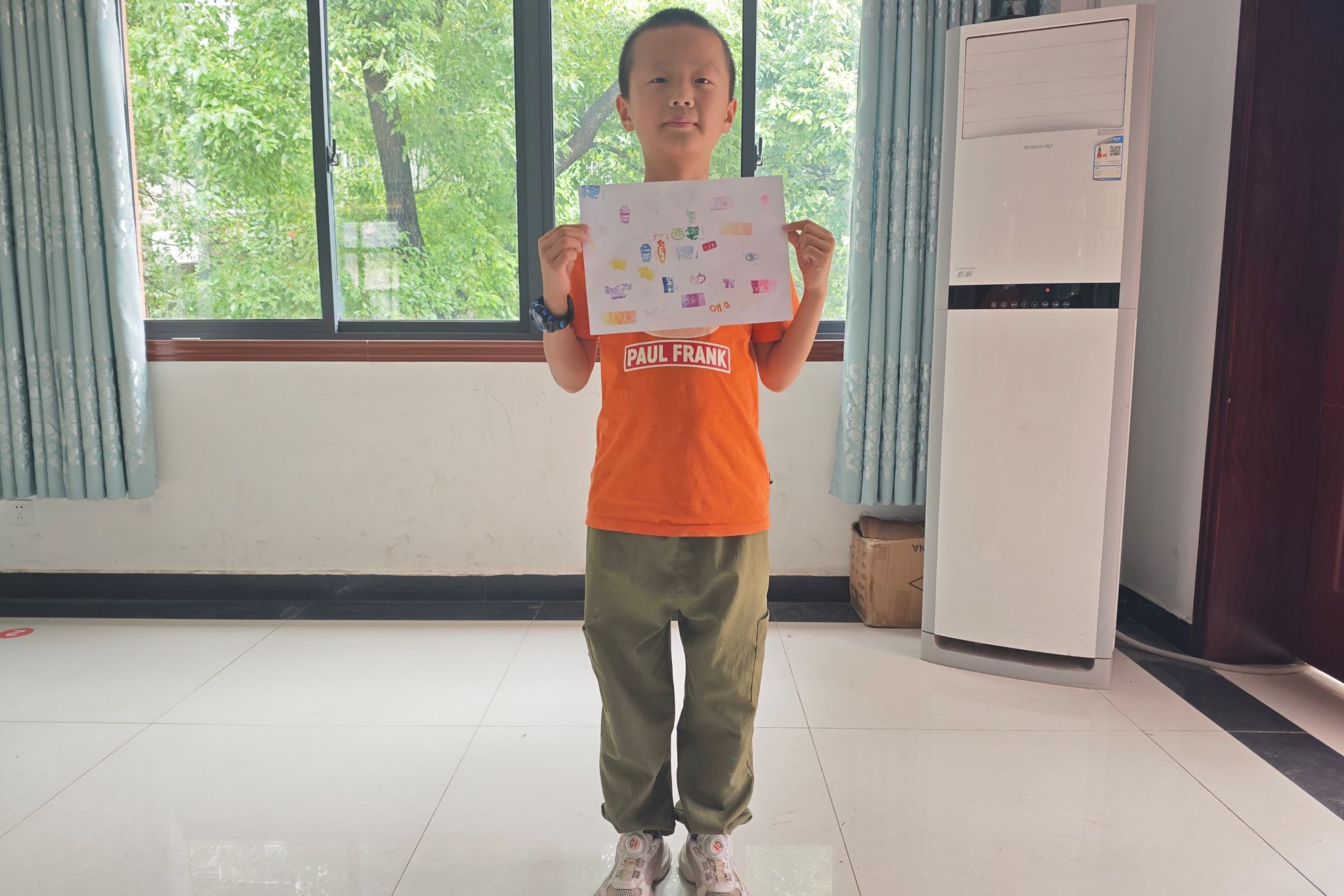 图为小朋友们完成了橡皮印章制作,高兴展示创作成果。
