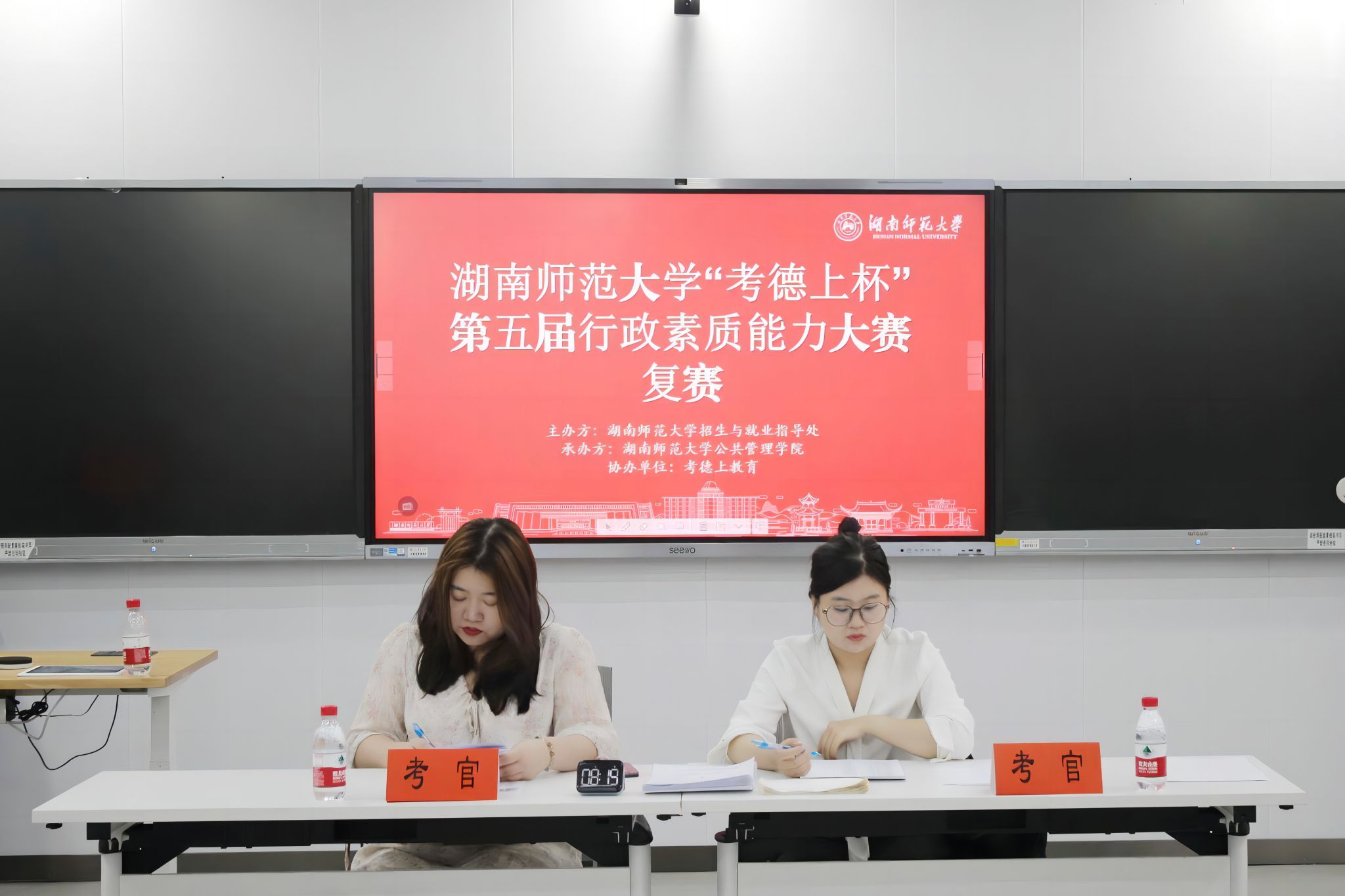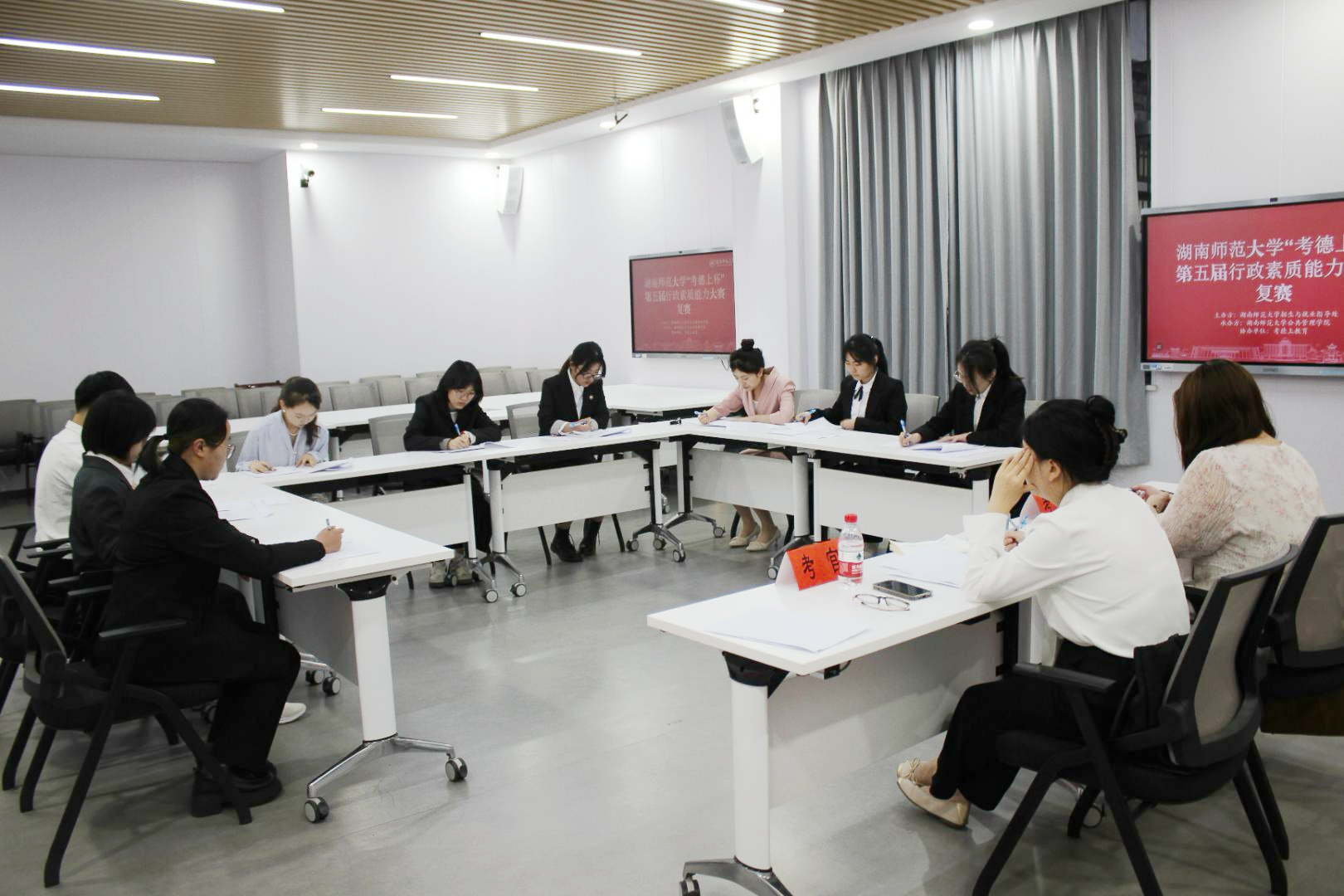 (通讯员 袁旭毅 张静然)为促进同学们积极参与政务实践与研究、关注国家政策、了解政府工作,培养同学们的政治意识和社会责任感,5月11日下午,公共管理学院在景德楼中栋108教室和209教室举办湖南师范大学“考徳上杯”第五届行政素质能力大赛复赛。