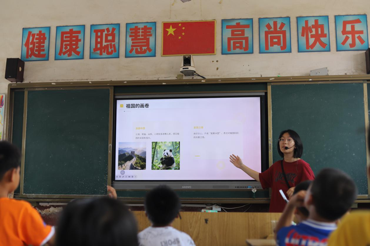 实践团支教组成员为学生们介绍祖国的发展样貌