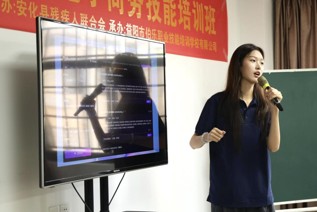 (通讯员 肖欣怡 冯丽博 韩凝烨)7月3日上午,新闻与传播学院“智启安化·残健同行”暑期实践团为安化县残联残障人士定制开展AI赋能直播培训,旨在通过人工智能技术助其突破身体限制,拓展就业创业渠道,搭建与数字经济的桥梁。