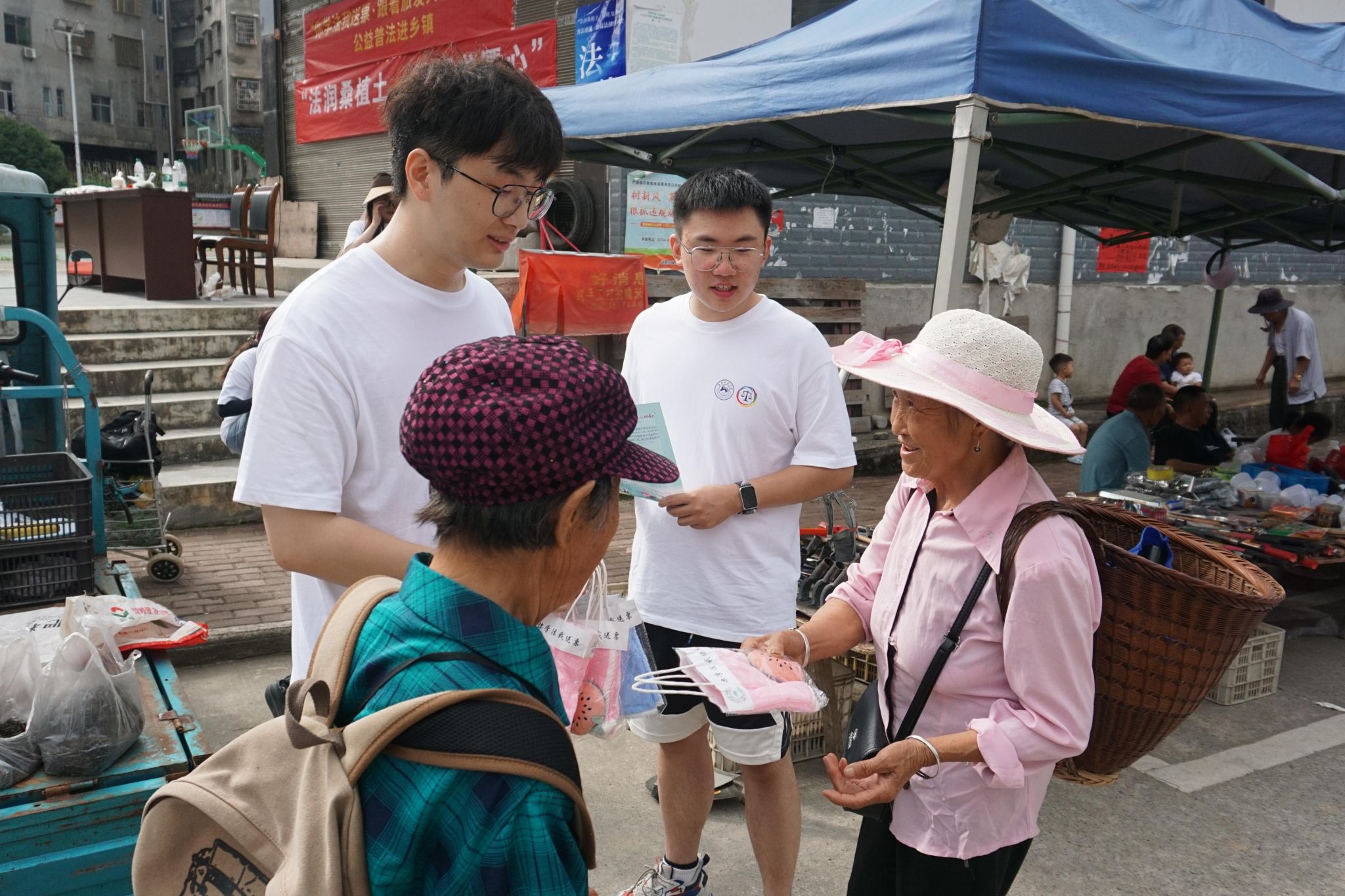 龙潭坪社区小组利用当地赶集日人流量大的特点,在集贸市场精心设置了“法润桑植土,情暖龙潭心”法律咨询台。实践队员们热情接待前来咨询的社区居民,就婚姻家庭、邻里纠纷、土地权益等与生活息息相关的法律问题提供免费的专业咨询和解答。同时,队员们积极宣传推介由湖南省司法厅与湖南省文化和旅游厅联合主办的“你学法我送票·跟着旅发大会游湖南”大型公益普法活动,鼓励群众参与学法。活动成效显著,累计发放各类普法宣传材料150余份,赠送法治主题小礼品70余份,现场接待法律咨询13人次,并对复杂法律问题进行了电话回访,还特别为几名未成年人普及了基础法律常识。