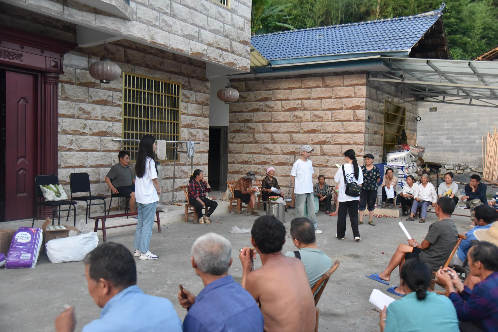 四方溪村小组在四方溪村村委副书记符海清、四方溪村驻村第一书记郁玲的协调组织下,利用村民晚间闲暇,举办了一场别开生面的屋场会普法活动。活动伊始,符海清向村民传达了土地延包政策,并着重强调了防范电信网络诈骗的重要性与紧迫性。实践队员们则精心编排并表演了方言反诈短剧《电话那头是陷阱》,生动再现了冒充“公检法”实施诈骗的典型套路和手法。逼真的演绎让村民们对诈骗过程有了直观深刻的认识,有效提升了识别和防范能力。活动现场,队员们还向村民发放了图文并茂的反诈宣传手册,并耐心解答了村民提出的各类法律问题。