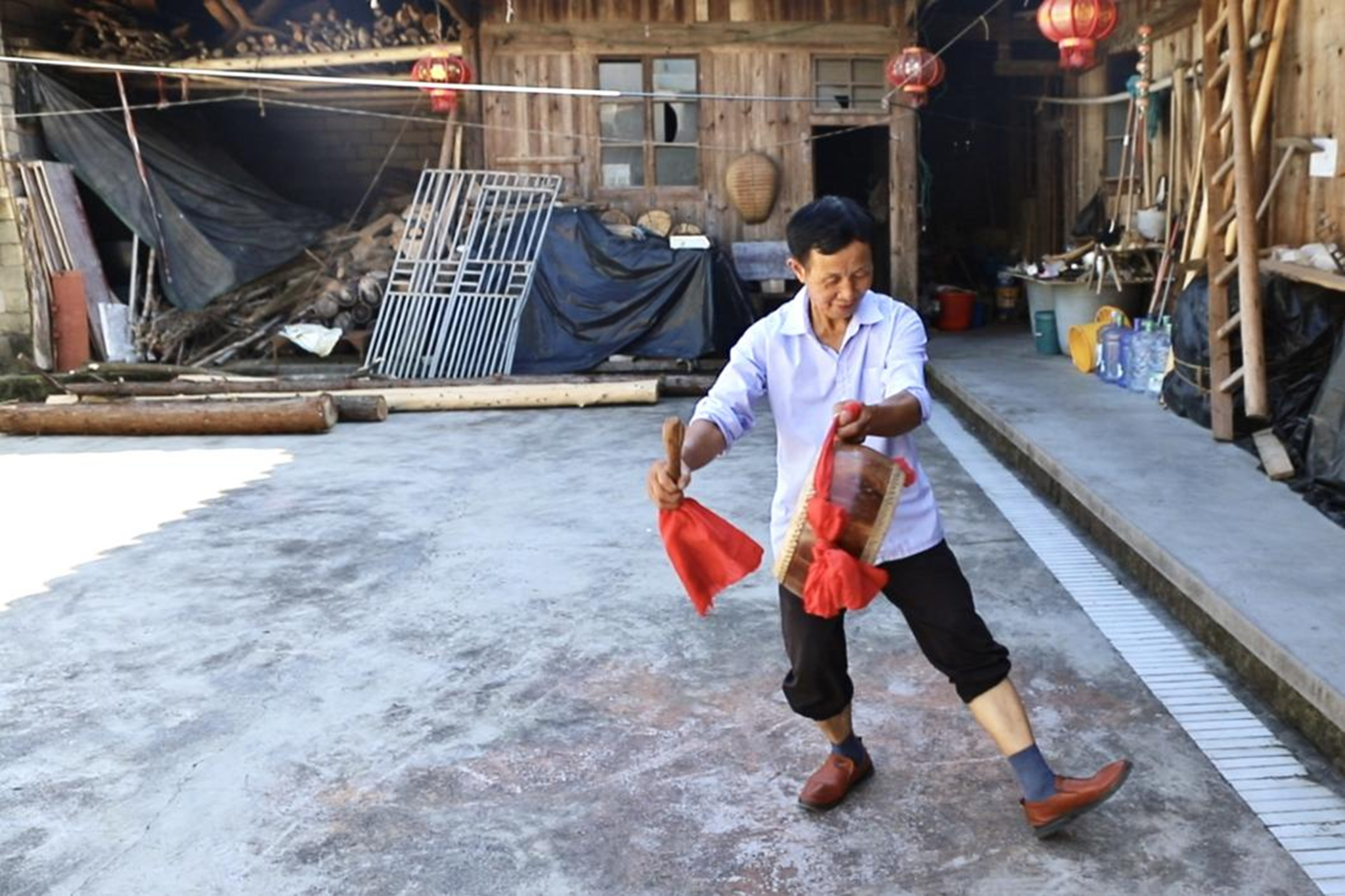 对于青年一代主动走近传统文化,钟必武感到欣慰。当下,仗鼓舞传承面临双重挑战:一是舞蹈学习门槛较高。钟必武回忆,从前他与其他数百人学艺,最终仅约30人达标。二是年轻人迫于生计外出务工,难以接续传统。尽管如此,多年来,钟必武始终坚持传承初心,不断宣传仗鼓舞。