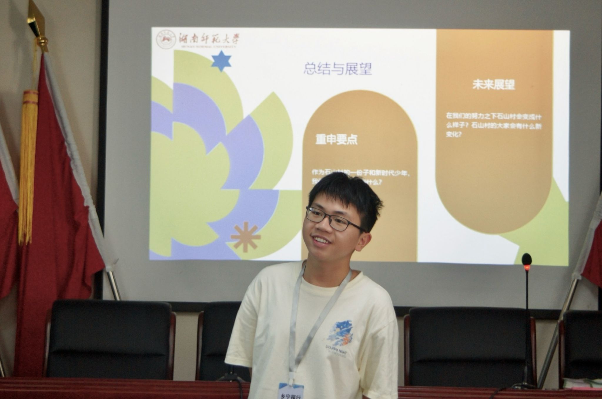 实践团成员结合石山村历史文化与乡村振兴实践,通过多媒体展示,带领学生们深入了解石山村的地理位置、历史文化资源和发展现状,在讲解过程中,学生们积极互动,分享自己对家乡的认知与感受,课堂气氛热烈。