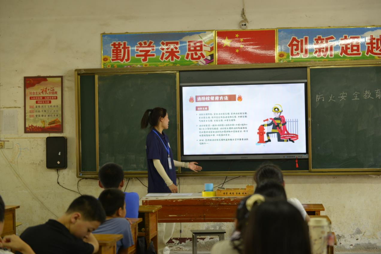 实践团依据学校周边环境特征,科学规划教学内容。活动以火灾事故警示视频开场,通过真实案例直观展现火灾危险。实践团成员从火灾成因分析切入,系统讲解常见火灾隐患识别方法与预防火灾核心措施,着重强调“不随意玩火”“不擅自使用电器”“不到易燃区域活动”等安全准则。