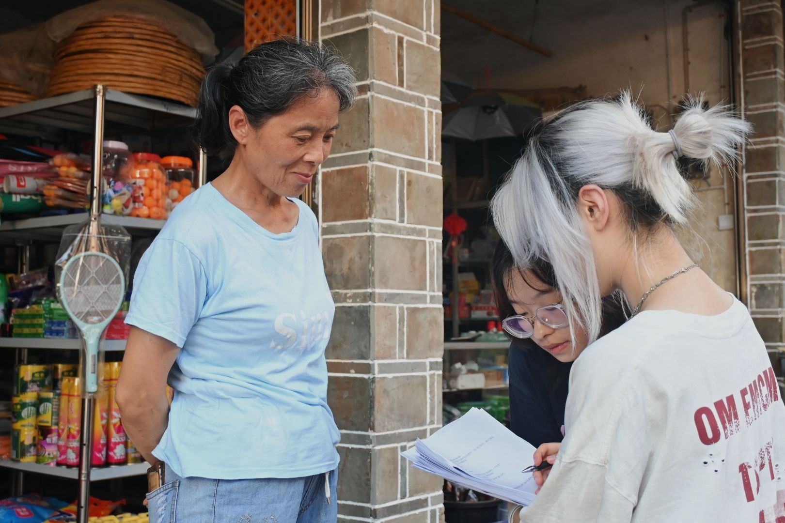 实践团成员分组走遍高椅村青石板巷,挨家挨户发放问卷。问卷内容涵盖村民对智能手机、数字支付、短视频平台等数字设备的日常使用情况,对高椅古建筑群、傩戏、黑茶制作等本土传统文化的认知与传承意愿,以及对数字化保护手段的接受度与参与意向。调研过程中,成员们耐心讲解问卷选项,并通过方言辅助沟通,拉近与村民距离。