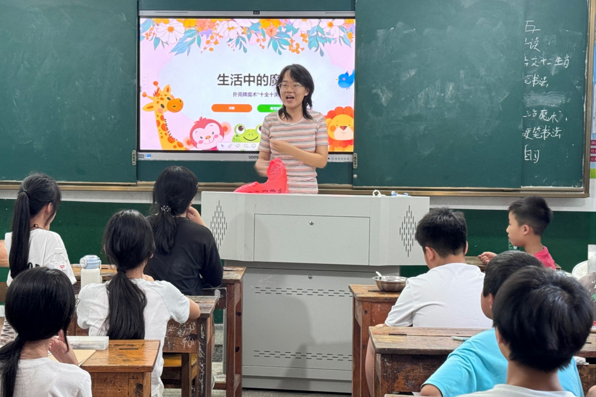 (通讯员 骆佳欣 程启慧)7月4日下午,文学院“墨韵杨花,文心远扬”暑期社会实践团在浏阳市杨花完全小学开展妙趣生活魔术课程。此次课程由实践团宣传组成员江文慧主讲,骆佳欣为助教,夏令营大班全体学生参与。