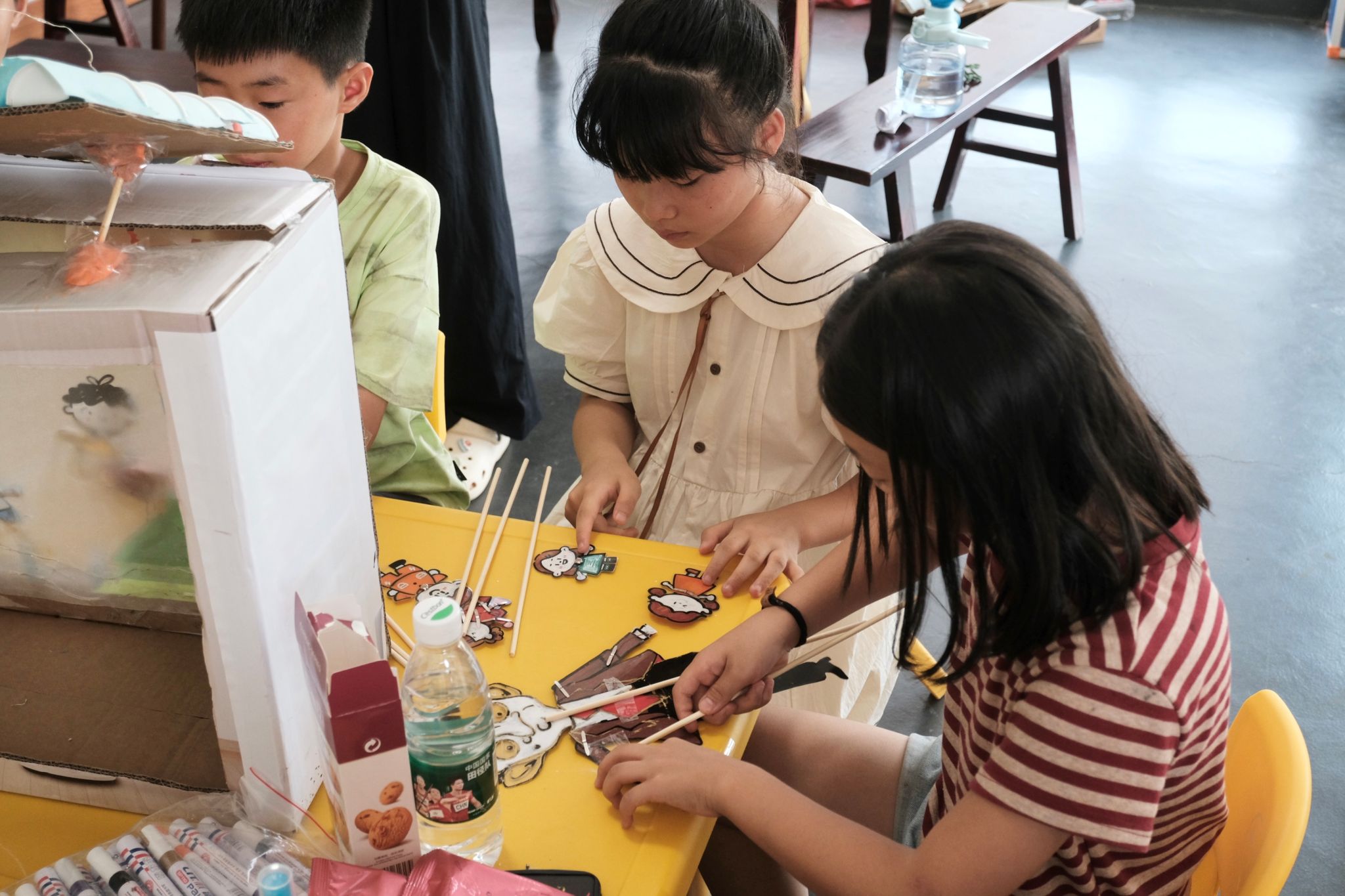 此次活动由实践团成员主持,长湖村部分学生参与。此次活动以中国传统非遗文化——纸影戏为核心主题展开。活动伊始,实践团成员先向学生们介绍了“纸影戏”的历史渊源与特点,引导学生在完成纸影戏人物制作的基础上开展创新尝试。期间,成员播放视频讲解纸影制作步骤,带领学生亲手体验纸影制作过程。随后,实践团成员从简介、历史渊源、制作工艺、传承价值四个方面,系统地向学生讲述纸影相关知识,并鼓励学生创新纸影形象。