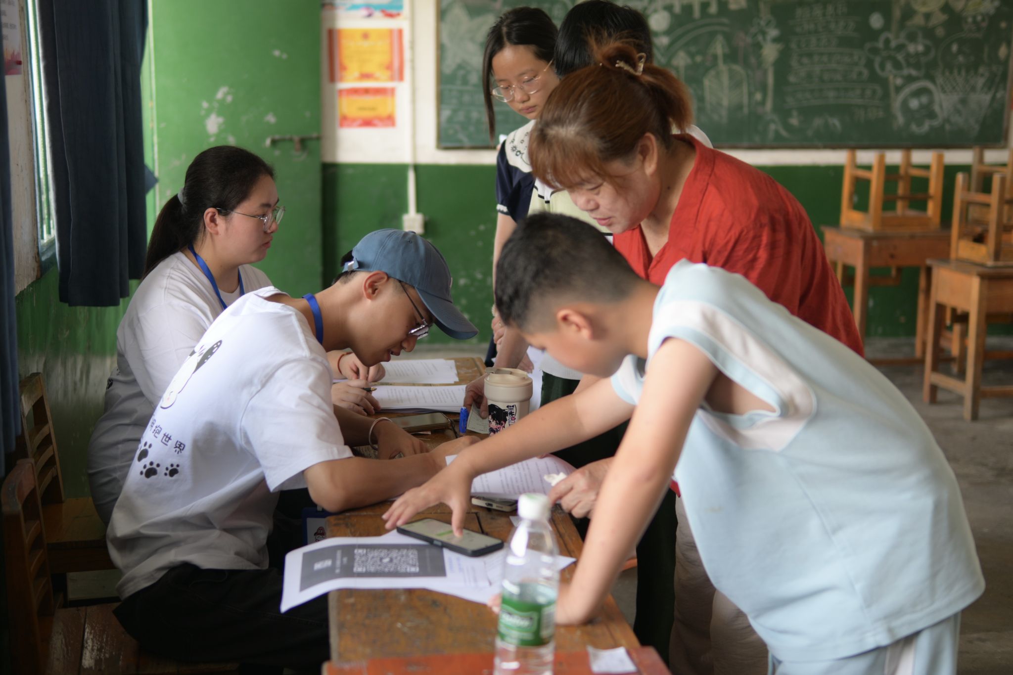 实践团成员协助村民报名