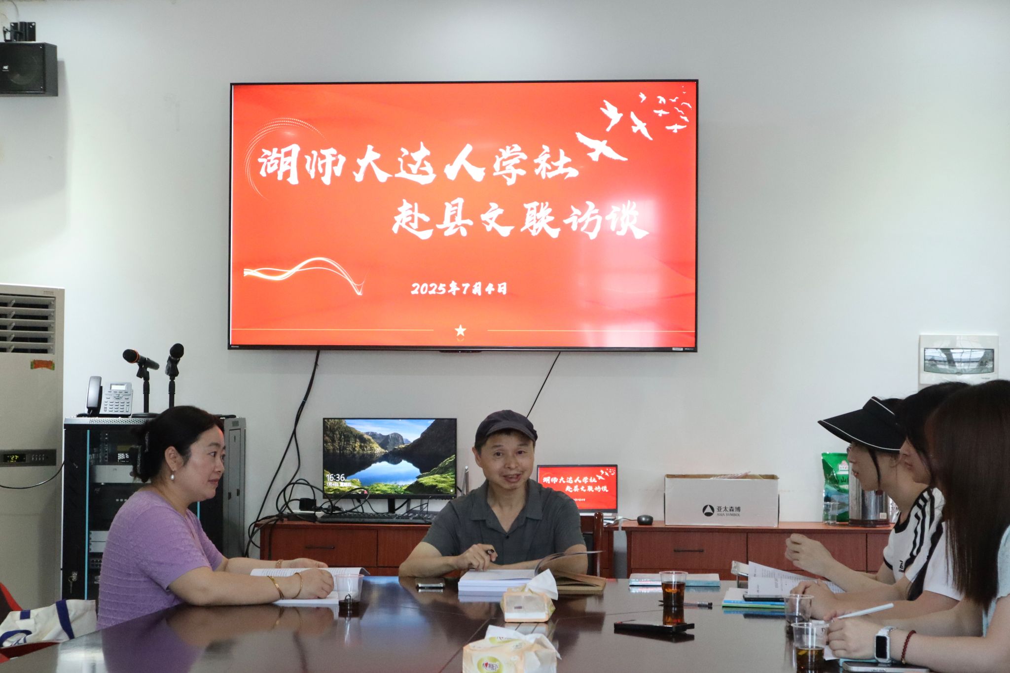 (通讯员 李秀瑜 黄静怡)为深入发掘炎陵文旅资源,进一步了解炎陵风土人情和历史文化,7月4日下午,生命与科学学院达人学社社会实践团赴株洲市炎陵县文学艺术界联合会开展调研。炎陵县作家协会主席、《神农风》执行主编刘青崧接受采访。炎陵县作家协会副主席兼秘书长黄燕妮以及实践团部分成员参加此次活动。