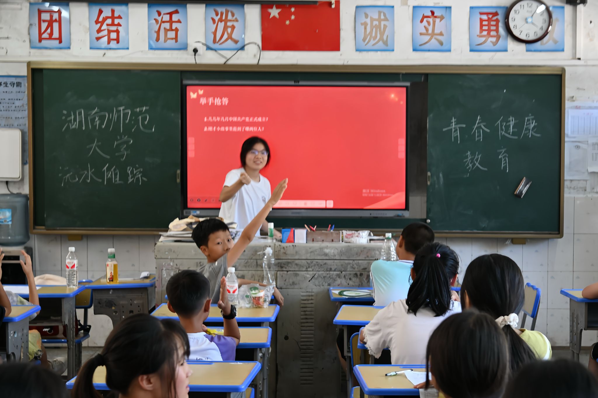实践团成员抵达七甲坪镇洞溪九校希望小学后,对学生进行傩文化了解程度调查,为后续的傩文化调研和口述史工作收集基础资料。实践团成员结合自身专业知识和实践经验,为同学们带来了多场内容丰富、形式生动的知识讲座。讲座内容聚焦青少年成长关键议题,涵盖生理心理健康知识、防溺水技能以及建党精神内涵。宣讲通过图文课件、动画视频、故事案例、水域实操演示等方式,引导学生了解身心变化,掌握辨别危险、自救互救的方法,深刻理解红色精神内涵。每场讲座均设互动问答与知识竞猜环节。宣讲结束后面向学生发放问卷,以评估学生知识掌握情况,回收学习反馈。