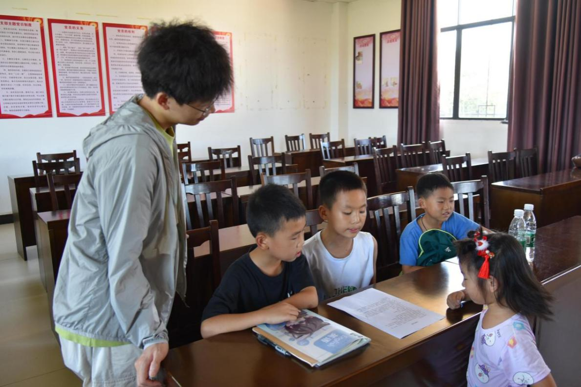实践团成员引导小朋友录制广播