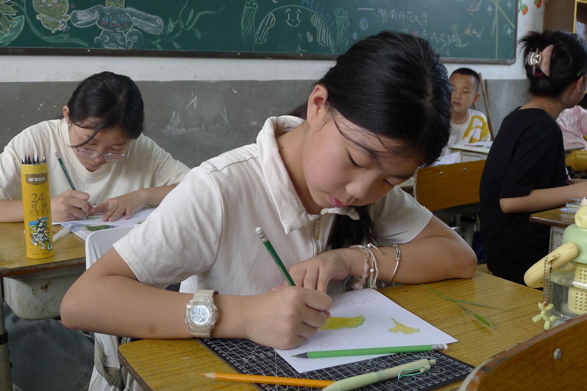 上午开展的是手工绘画课,实践团成员引领孩子们走进大自然的“艺术课堂”。在老师的指导下,孩子们将收集的各式树叶和花朵,运用临摹、拓印等方式,创作出了独具特色的植物画。孩子们充分发挥想象力,将自然之美定格于画纸上。此次课程不仅锻炼了孩子们的动手能力,还让他们在创作中感受到自然的魅力。