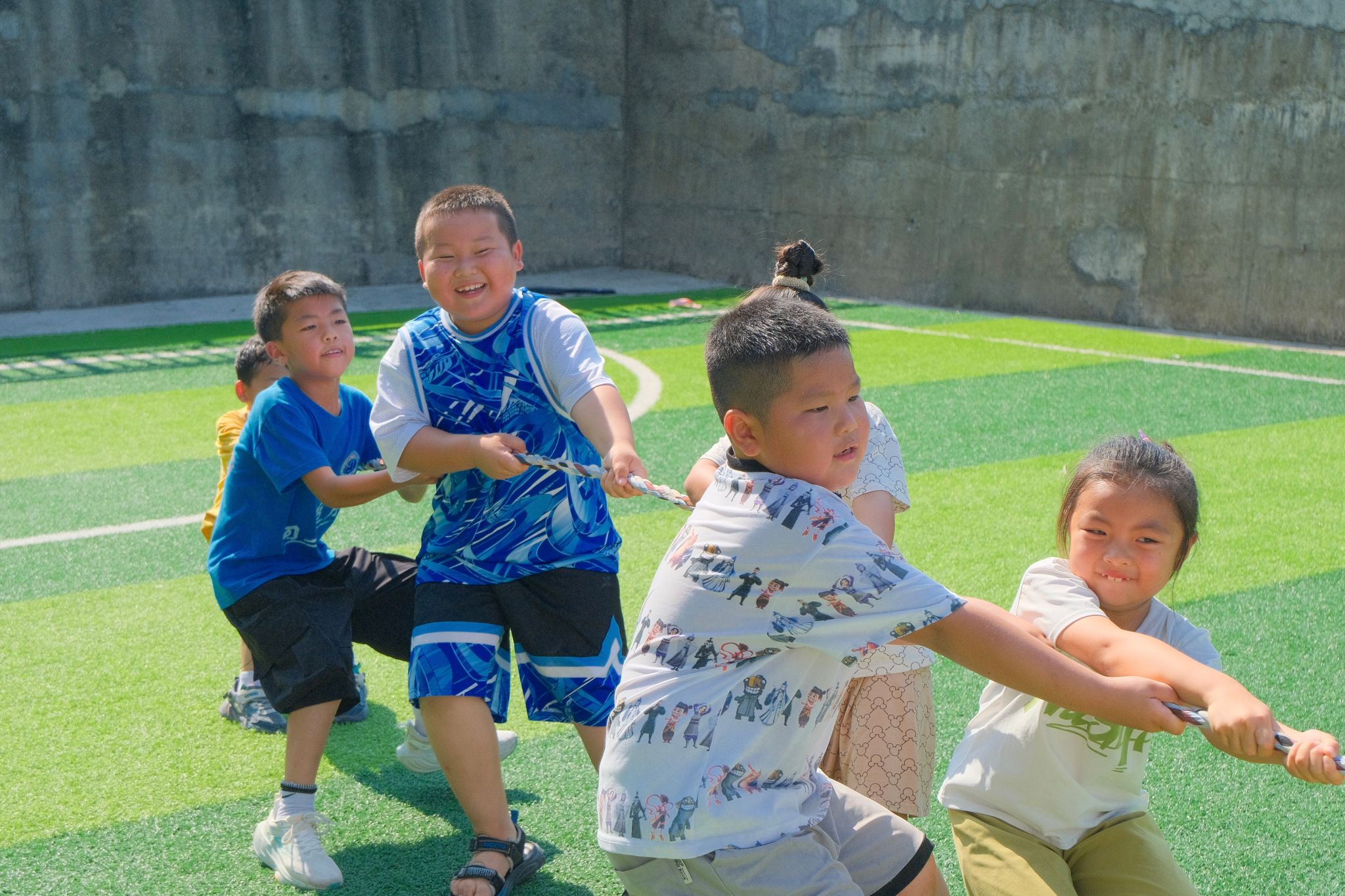 小班学生进行拔河比赛